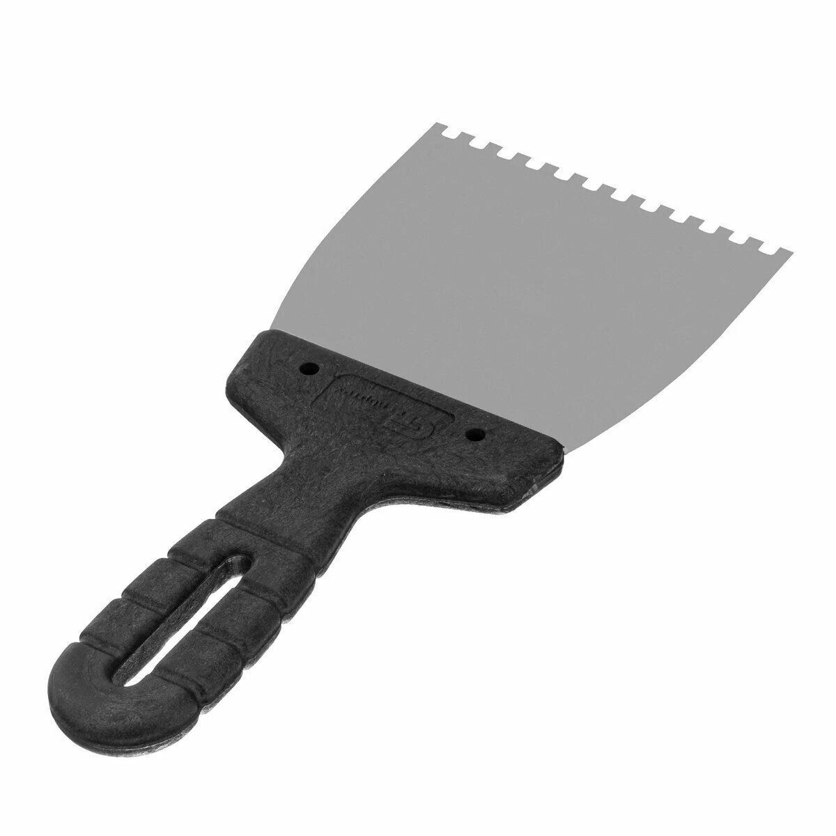 10 цен на Шпатель из стали, 100 мм, зуб 4 х 4 мм, пластмассовая ручка.