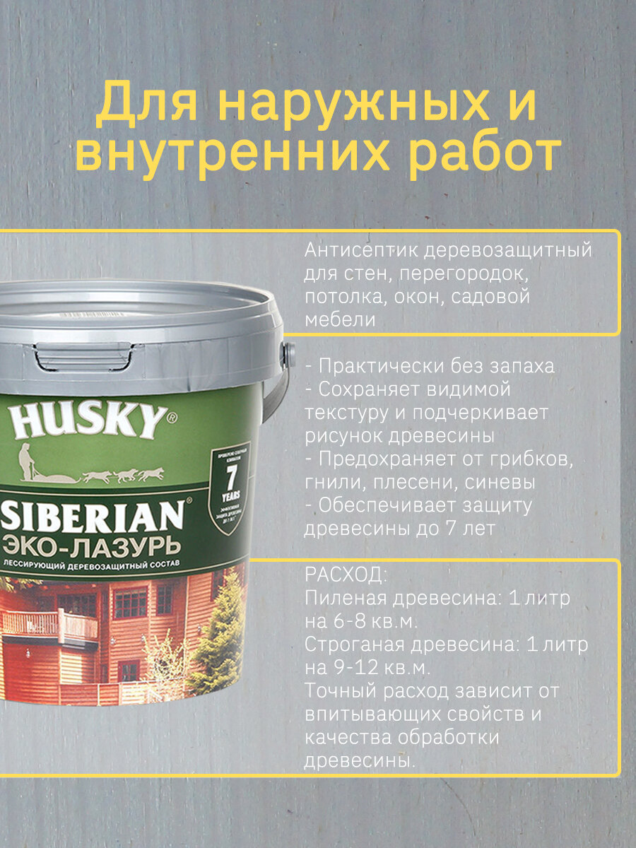 Отзывы на Хаски / Эко-Лазурь для древесины, пропитка антисептик для дерева полуматовая HUSKY SIBERIAN антик (0,9л)