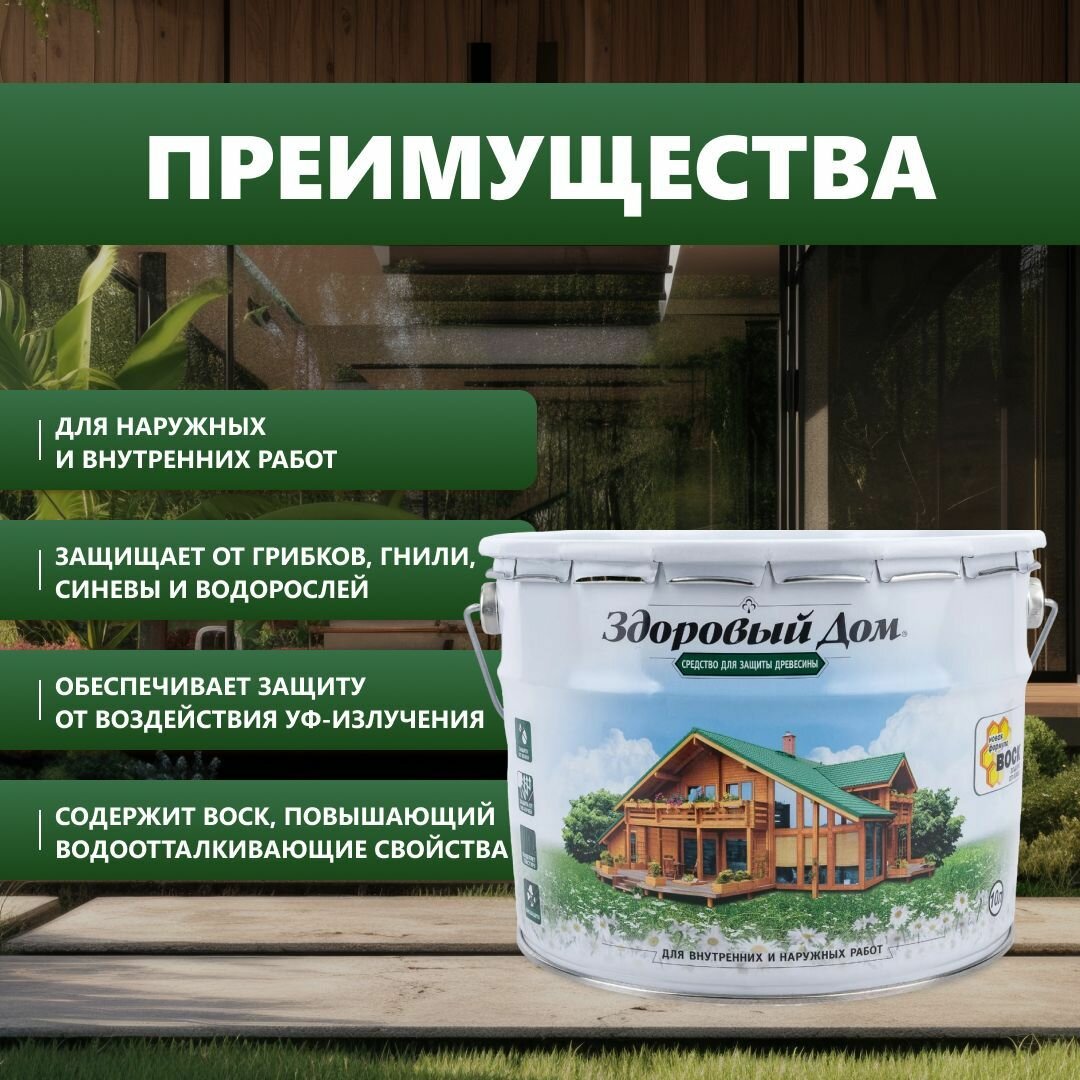 Средство для Защиты Древесины Здоровый Дом 10л Бесцветный, Алкидная для Внутренних и Наружных Работ.