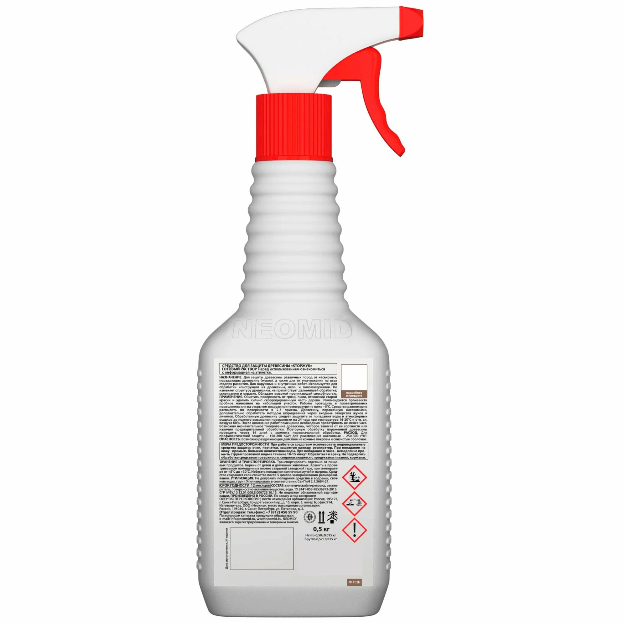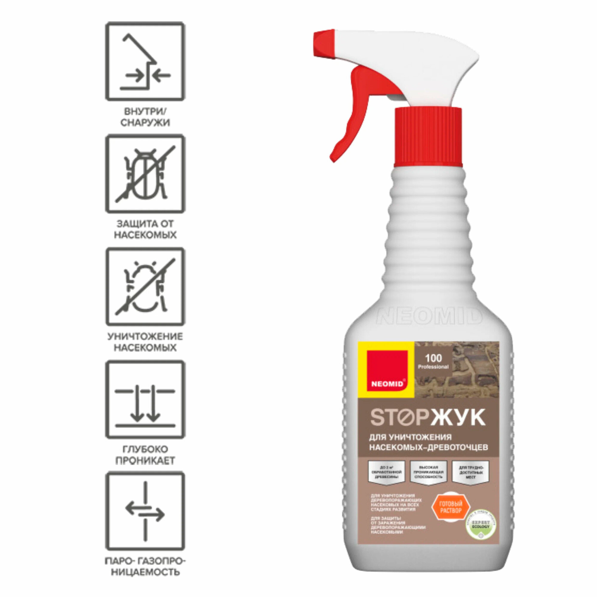Пропитка для уничтожения жуков-древоточцев Neomid 100 STOPЖУК готовый раствор (0,5 л) информация: