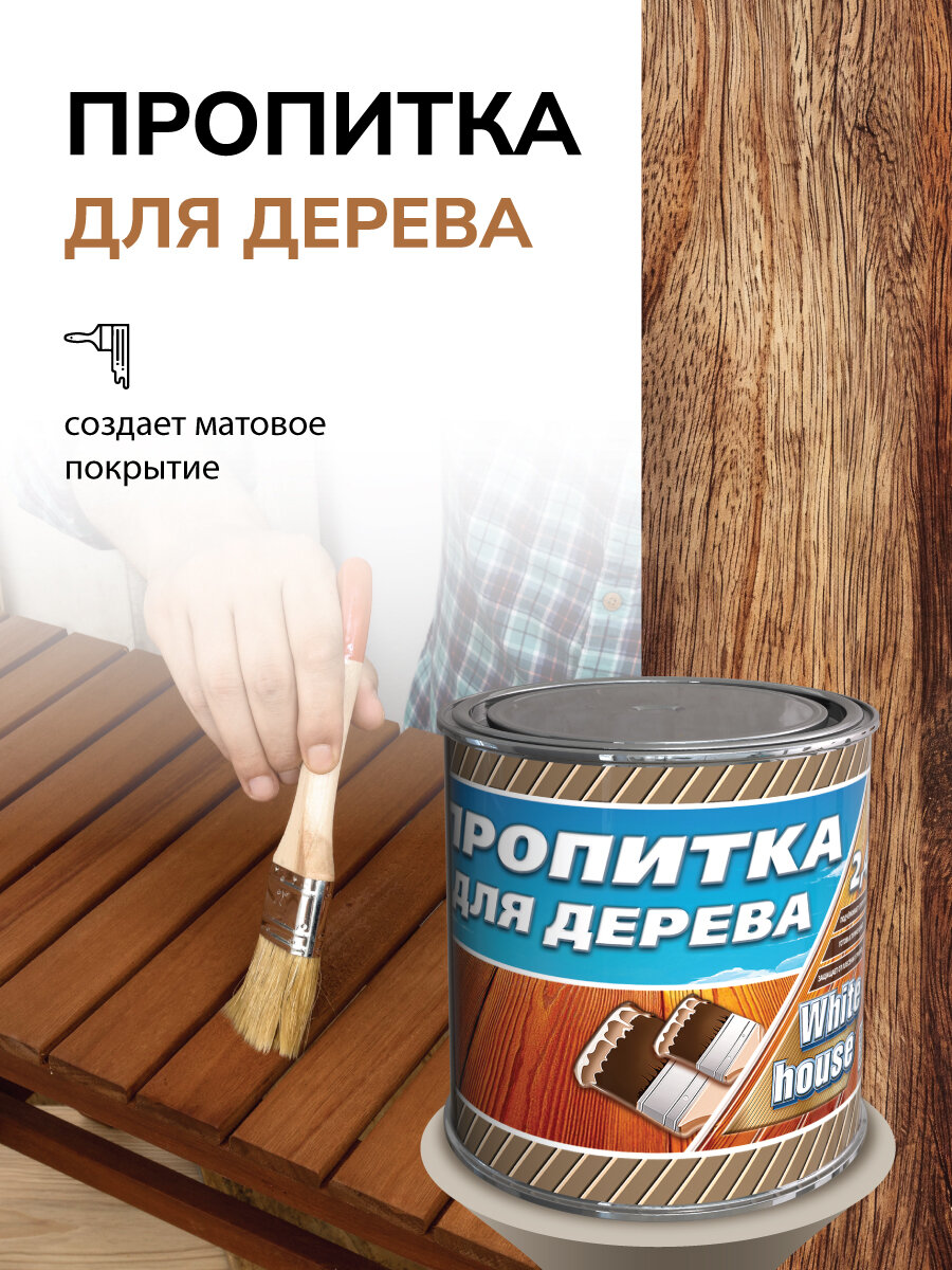 Пропитка для Дерева White House 0.8л Тик, Полуматовая, Алкидная с Антисептиком, Матовая для Внутренних и Наружных Работ. 481 ₽