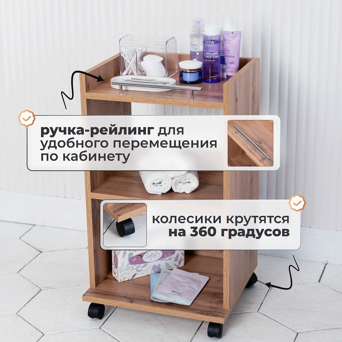 Этажерка тумбочка , тележка косметологическая Cosmotec Астра ЛДСП, на колесиках, Бежевая 2 490 ₽