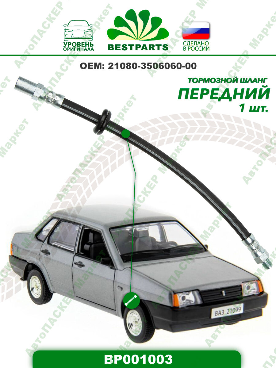 10 цен на Шланг тормозной передний, 335 мм, для а/м ВАЗ Лада 1111 Ока, 2108/09/099, 2113/14/15, 1 шт, гибкий, BP001003, 42821