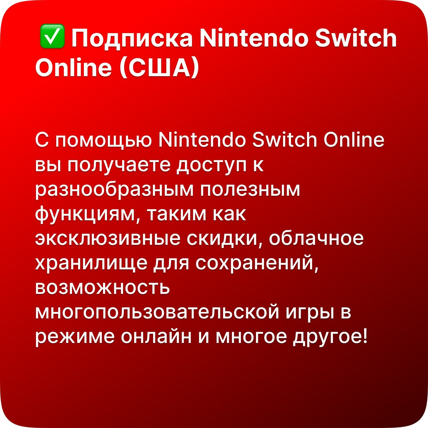 Nintendo Switch Online - подписка на 3 месяца | Только для США | Все коды от официальных поставщиков 1 044 ₽