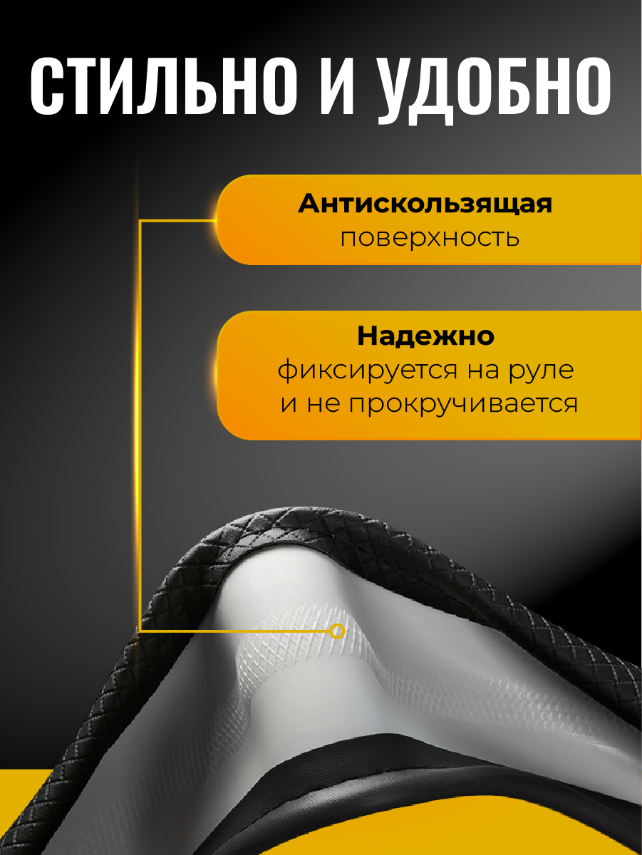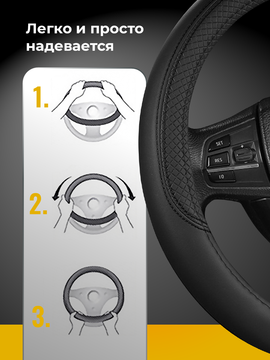 10 цен на Оплетка на руль WELHOME, универсальная, диаметр 37 - 39 см, искусственная кожа, чёрная