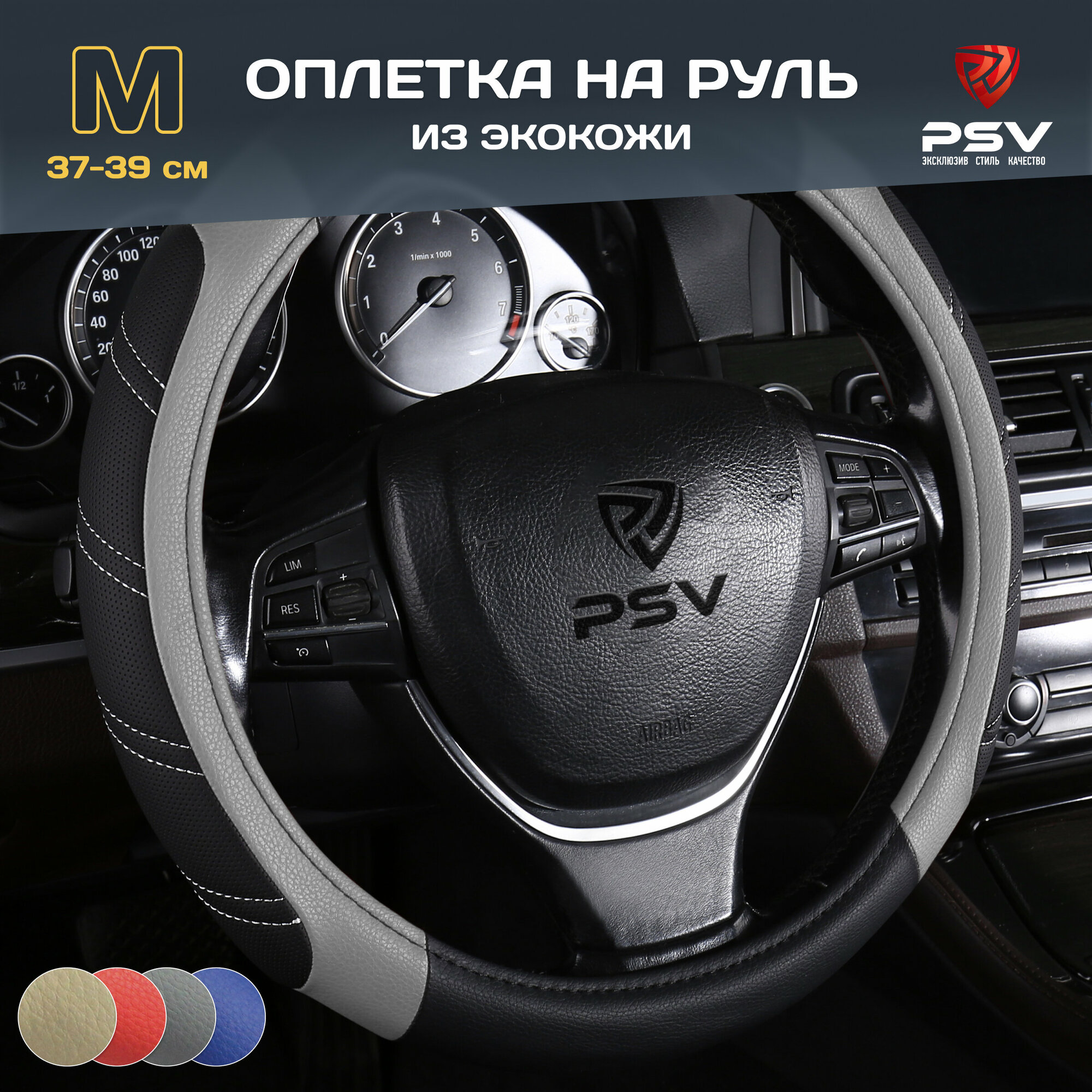 Отзывы на Оплетка чехол на руль PSV OVERLAY (Черно-Серый) M 37-39 см, экокожа, 136070