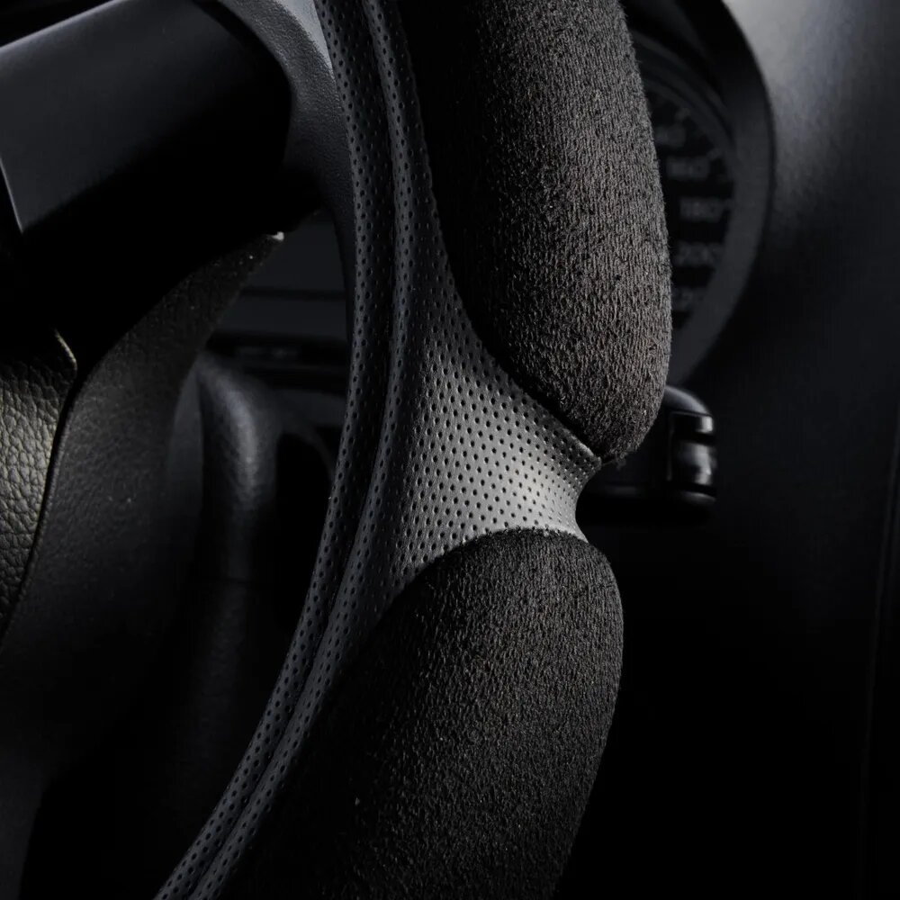 Спонжевая оплетка руля AVS SP-426S-B ( размер S, черный) экокожа