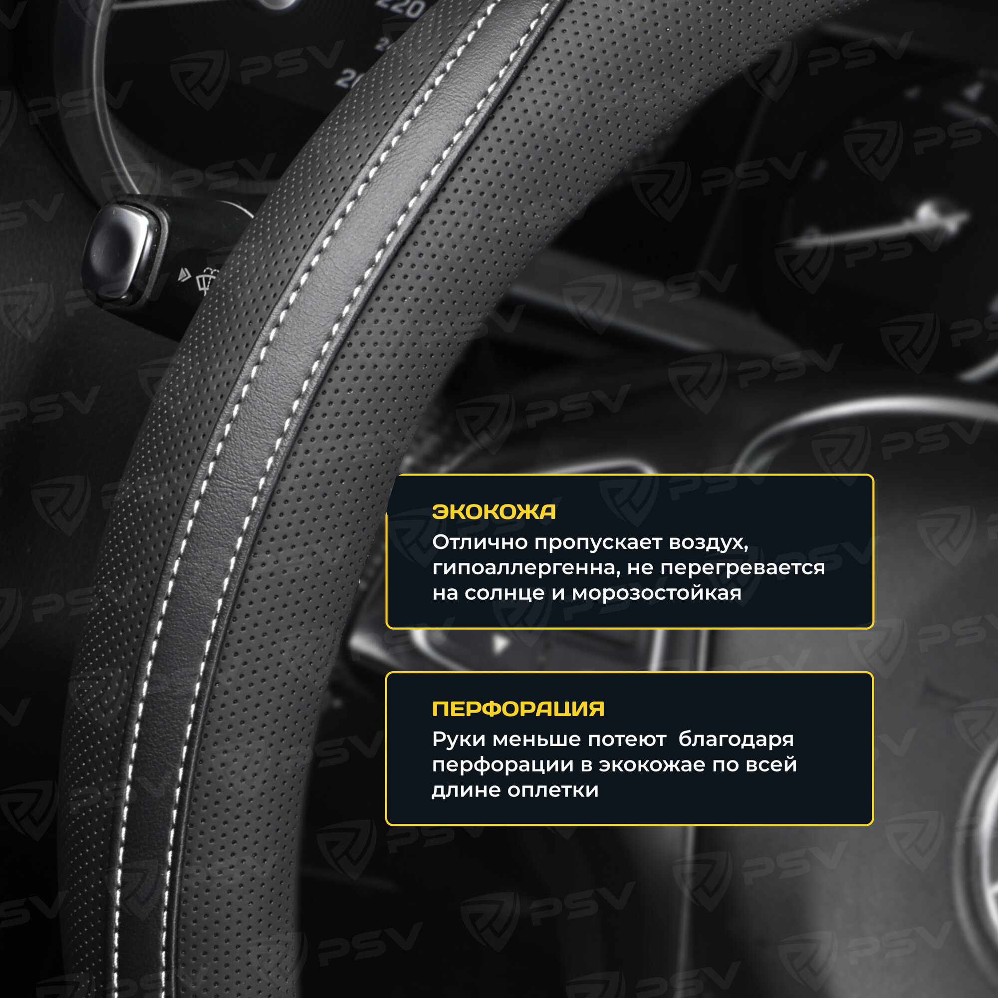 Оплетка чехол на руль PSV TERMIT (Черный с белой строчкой) M 37-39 см, экокожа, 136857 750 ₽