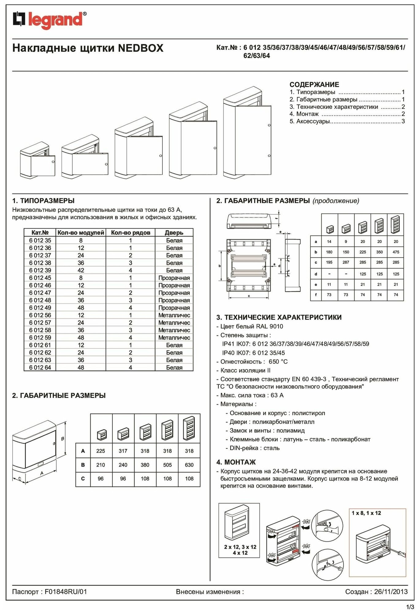 Отзывы на Щит распределительный навесной Legrand Nedbox пластиковый IP40 380х320х110 мм 24 модуля