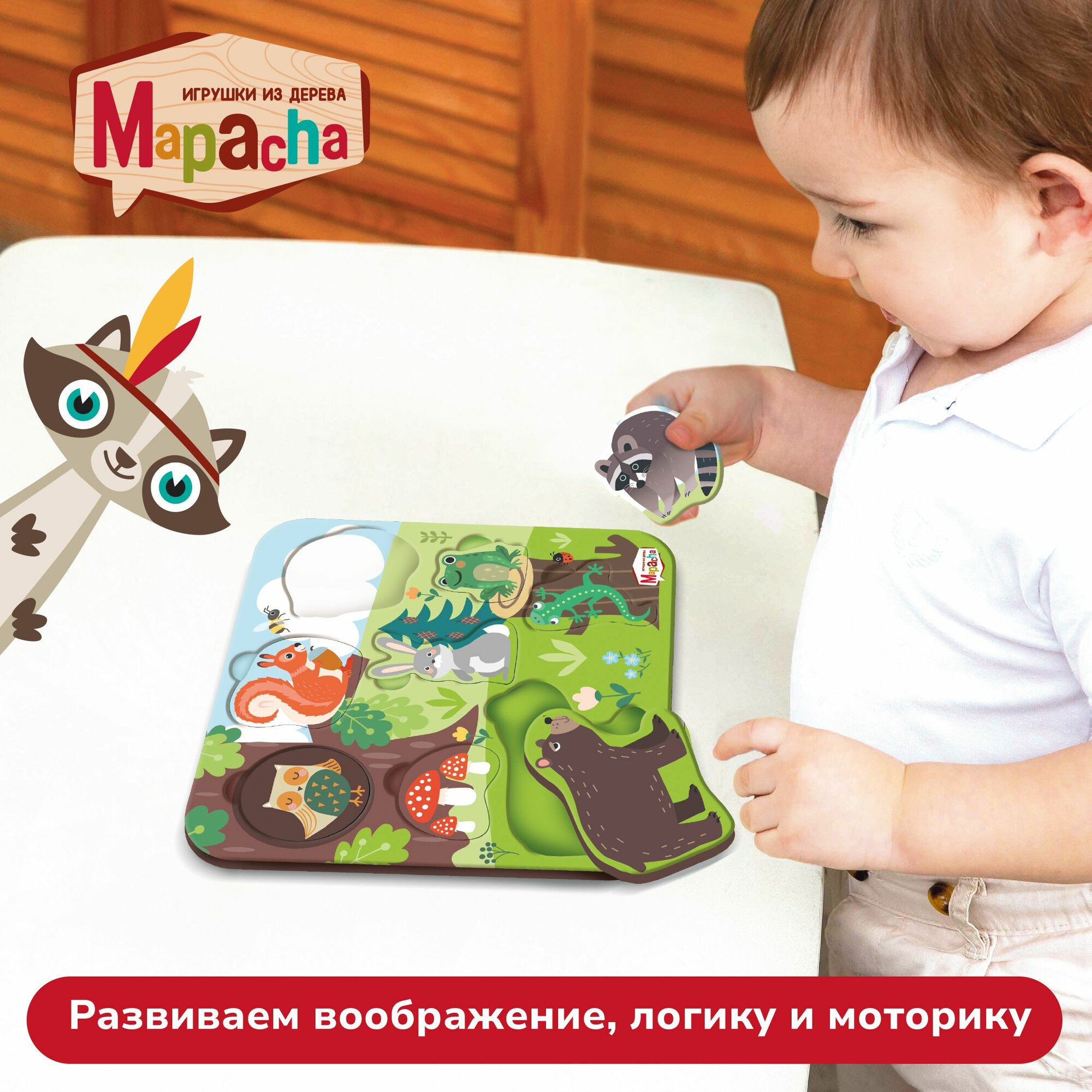 Развивающая деревянная игрушка вкладыши пазлы для малышей Джунгли Mapacha