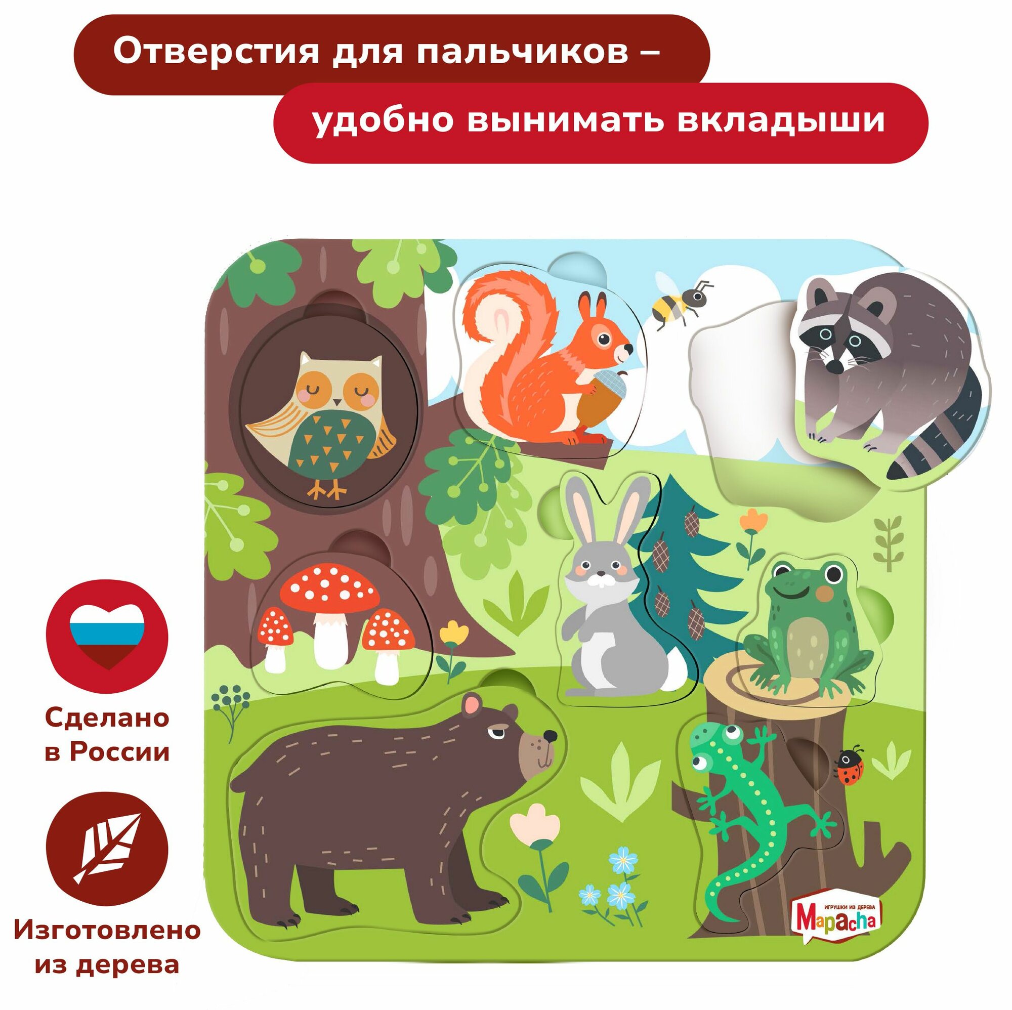 Вкладыши Mapacha "Животные леса", дерево, развивающие, 7 элементов 389 ₽