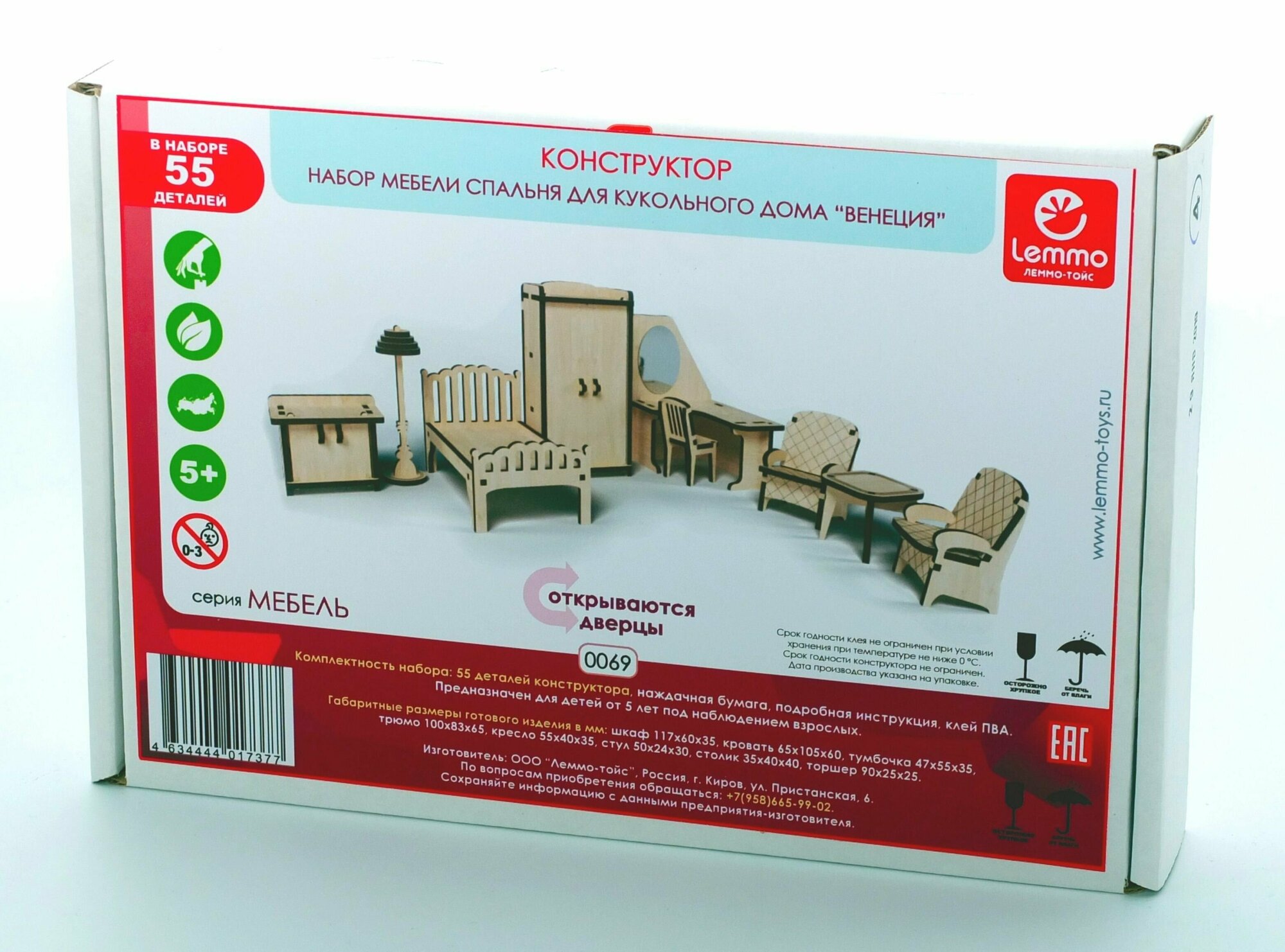 Набор кукольной мебели Lemmo 00-69 "Спальня" для домика "Венеция" информация: