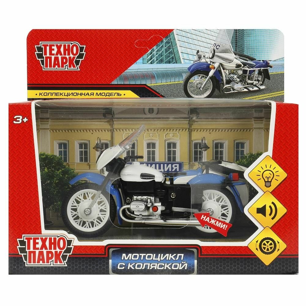 Модель металл свет-звук мотоцикл С коляской полиция 13 см, белый, кор. Технопарк SIDEMOTO-13SLPOL-WH 1 256 ₽