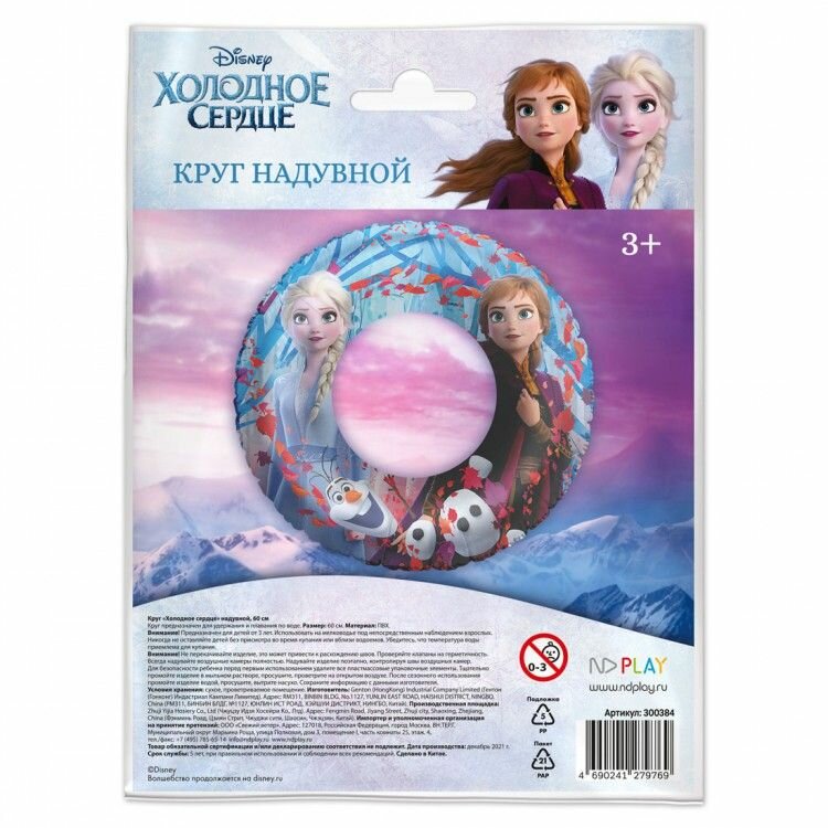 Круг надувной детский для плавания и купания ND Play / Холодное сердце (ПВХ, 1 шт, 60 см, 3-6 лет) пакет с подложкой 20 х 15 х 1 см