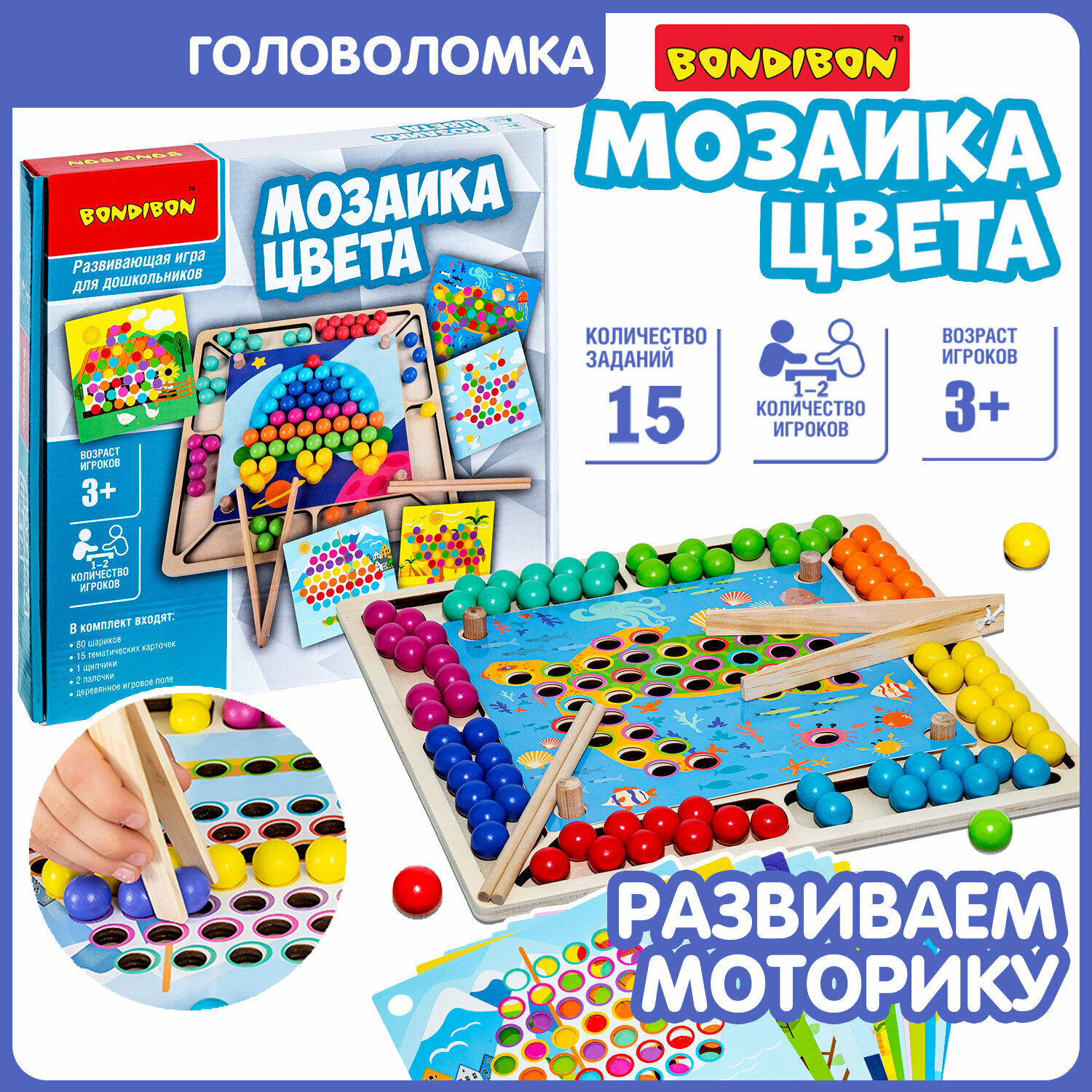 Развивающая игра из дерева БондиЛогика Bondibon Развивающая игра из дерева мозаика цвета информация:
