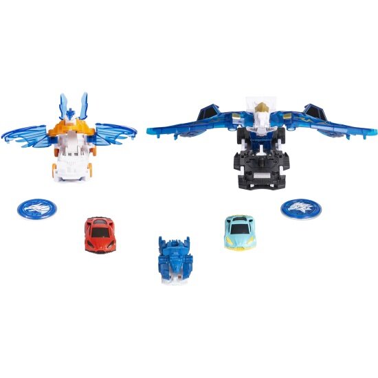 | Комплектация | В набор входят 2 машинки-трансформеры (24х13х9 см) и (11х8х14 см), 2 энергетических диска, 2 скричер-кара, минискричер. |