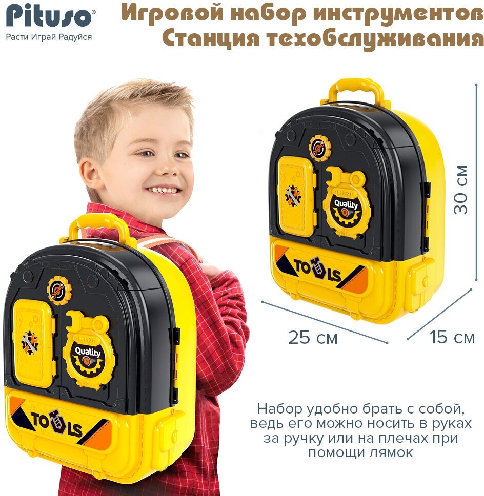Игровой набор автомеханик Pituso "Станция техобслуживания 2 в 1 ", рюкзак двухсторонний, набор инструментов, цвет мульти