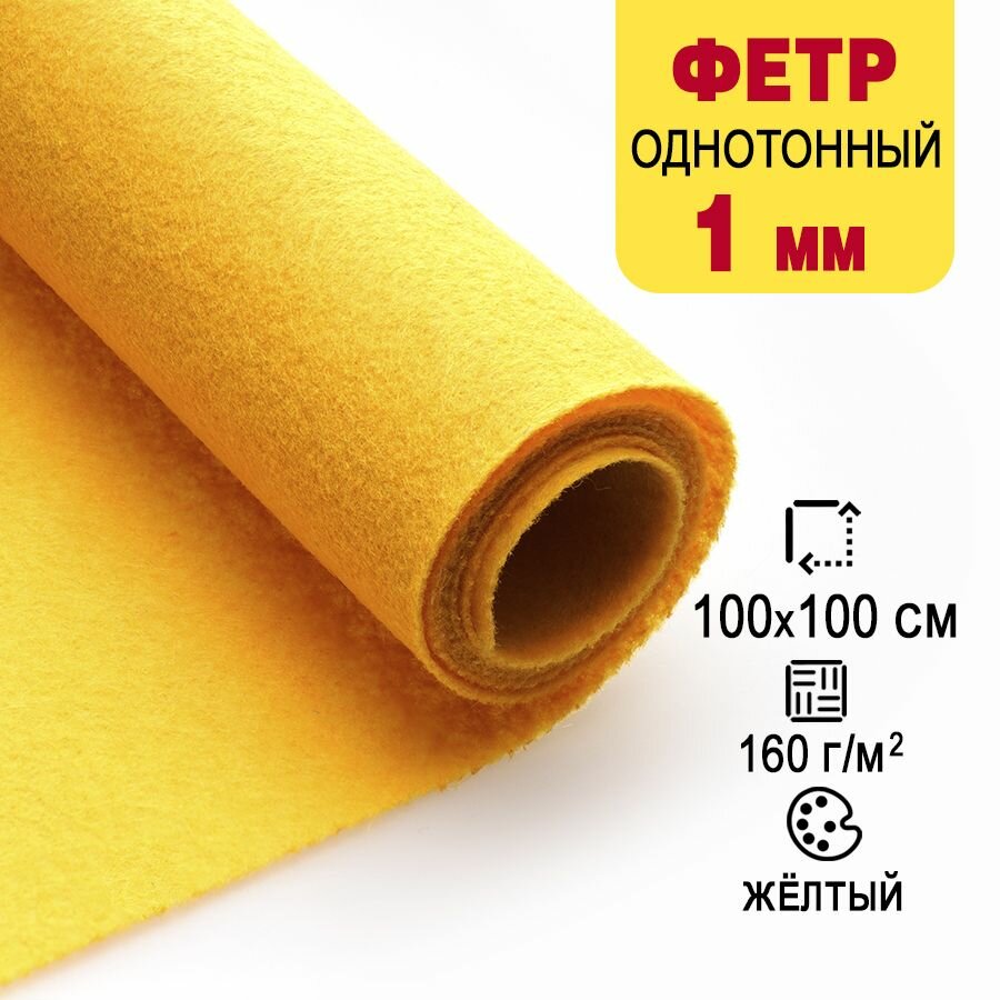 10 цен на Фетр однотонный твердый 1 мм в рулоне 100 х 100 см, желтый С18