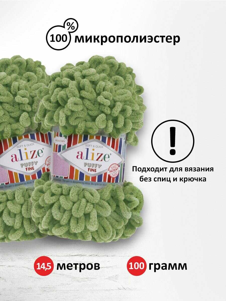 Пряжа для вязания руками с готовыми петлями ALIZE 'Puffy Fine' 100г, 14,5м (485 зеленая черепаха), 5 мотков информация: