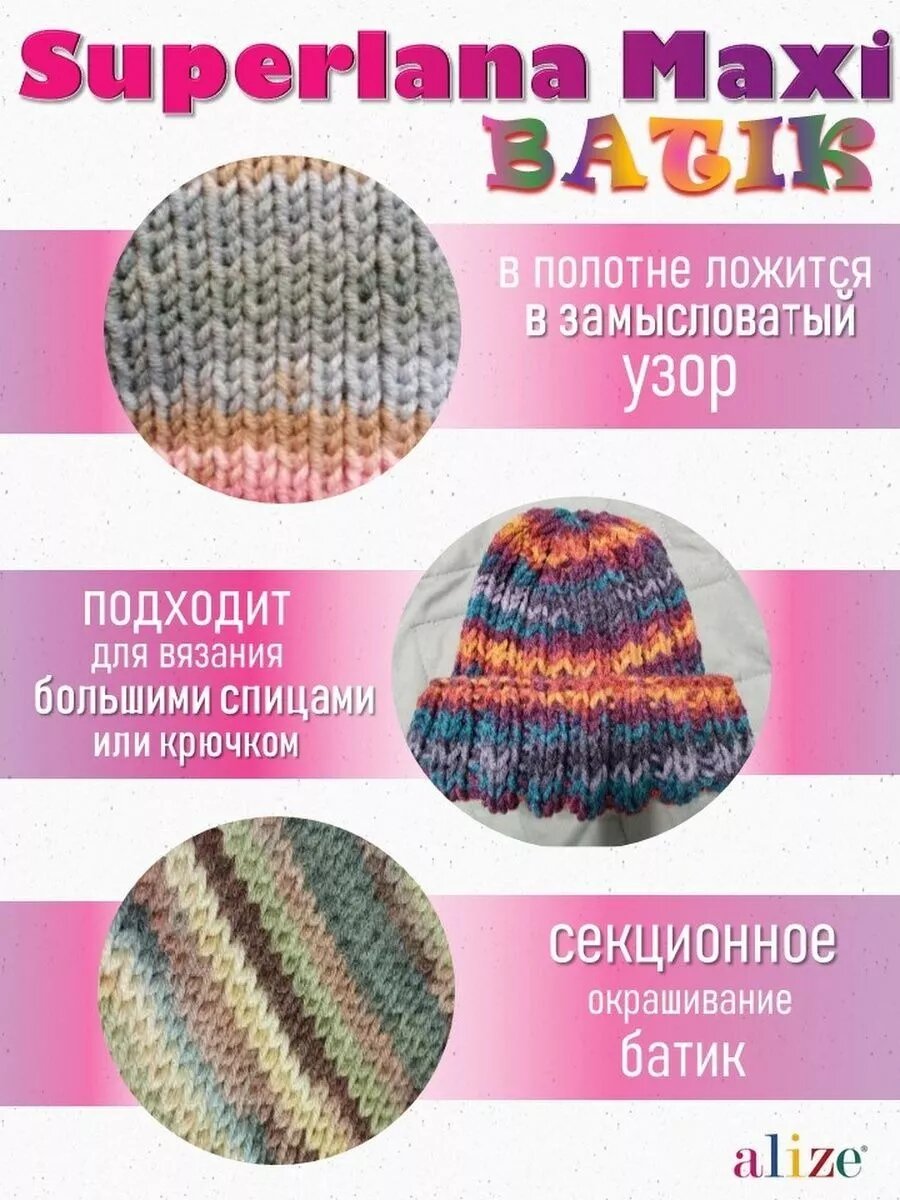 Отзывы на Пряжа Superlana maxi batik, Alize, батик - 7914, 25% шерсть, 75% акрил, 5 мотков, 100 г., 100 м.