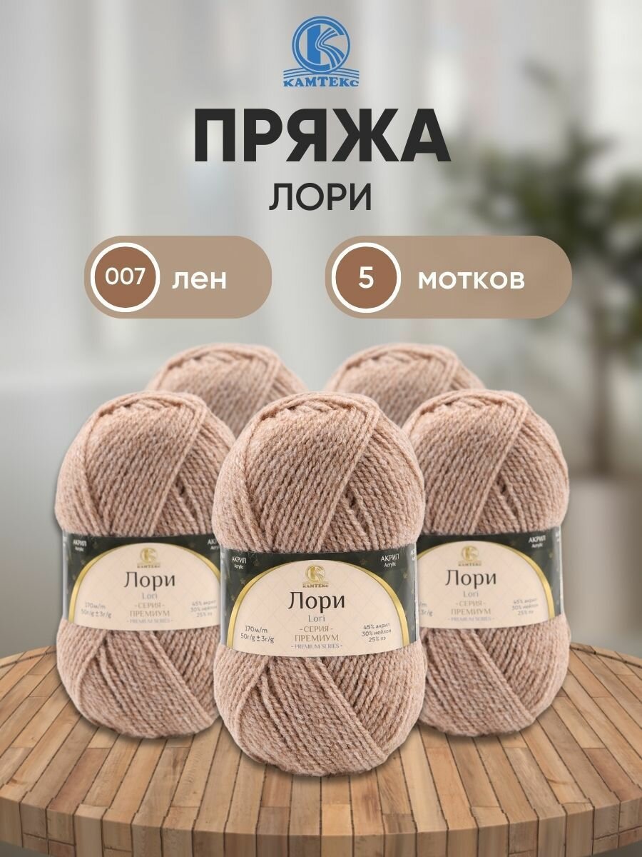 Пряжа для вязания Камтекс 'Лори' 50г, 170м (45% акрил, 30% нейлон, 25% полиэстер) (007 лен), 5 мотков информация: