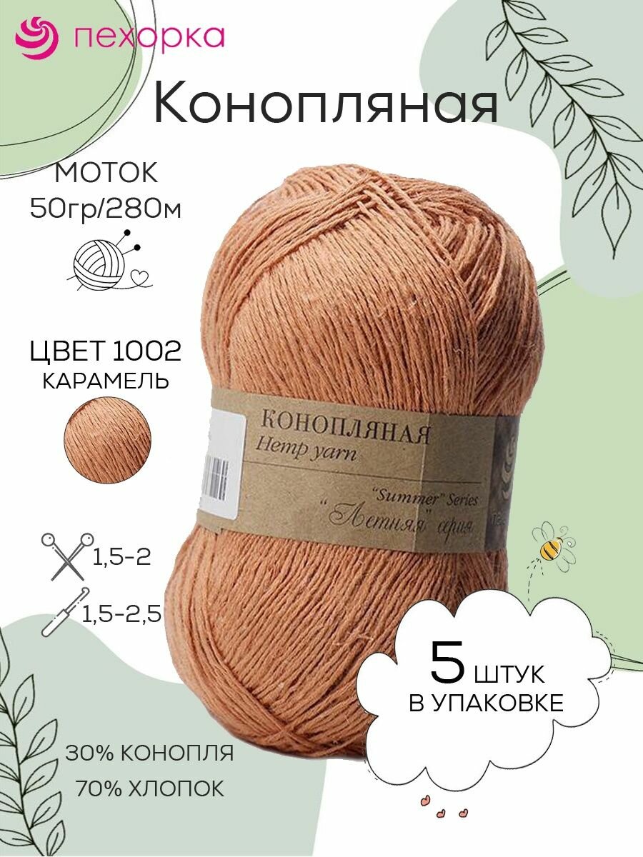 Пряжа Пехорская ПТ Конопляная 70% хлопок, 30% конопля 5 шт. х 50 г 280 м +- 14 м N1002 карамель 739 ₽