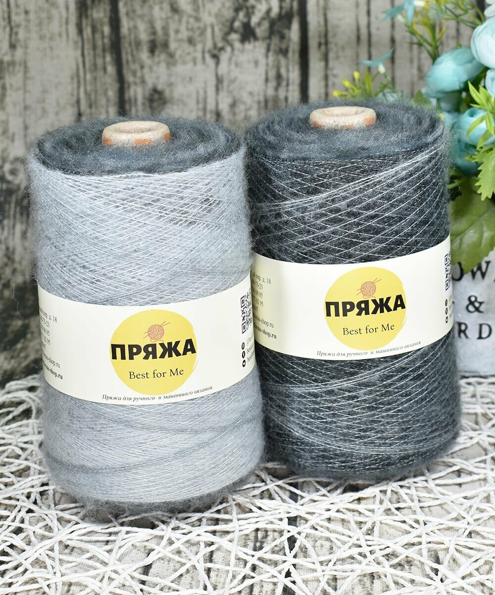 10 цен на Пряжа на бобине Кид-мохер с длинным переходом цвета цв.108 серо-черный (250гр.)