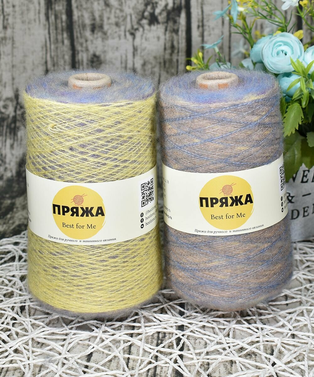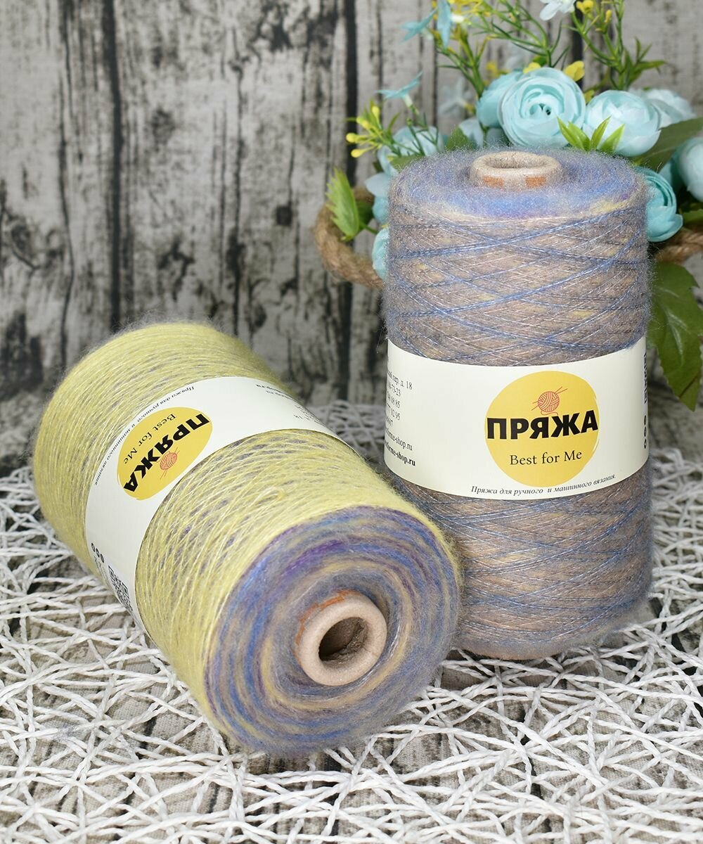 Пряжа на бобине Кид-мохер с длинным переходом цвета цв.105 ГОЛУБ-ЖЕЛТ-СИРЕНЬ (250гр.) 1 500 ₽