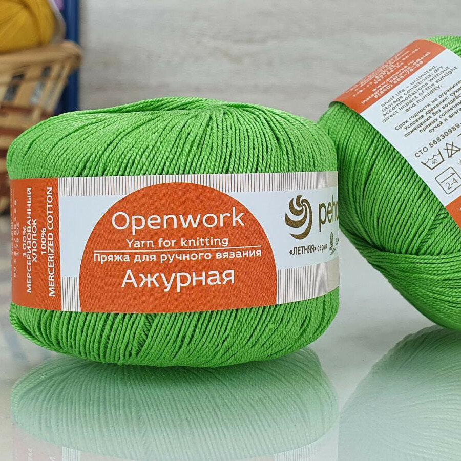 Пряжа Ажурная (Пехорка), Зелёнка - 511, 100% мерсеризованный хлопок, 10 мотков, 50 г, 280 м.