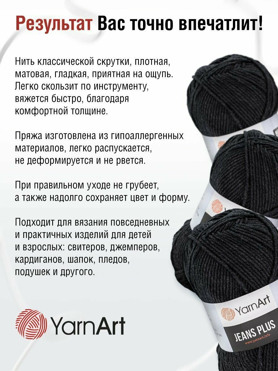 Пряжа для вязания YarnArt Jeans Plus, цвет 28 графит, моток 100г, 160м, 5 мотков 1 610 ₽