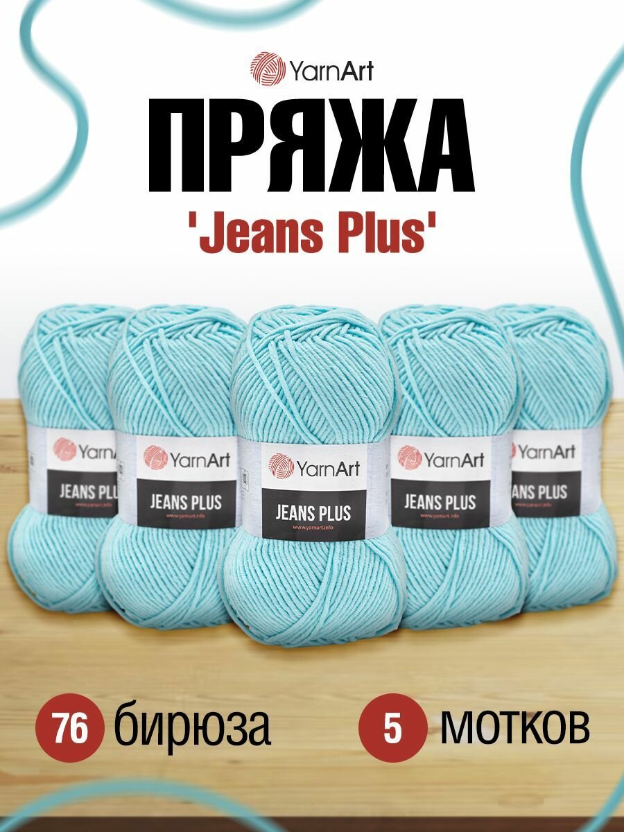 Пряжа для вязания YarnArt Jeans Plus, цвет 76 айсберг, моток 100г, 160м, 5 мотков 1 610 ₽