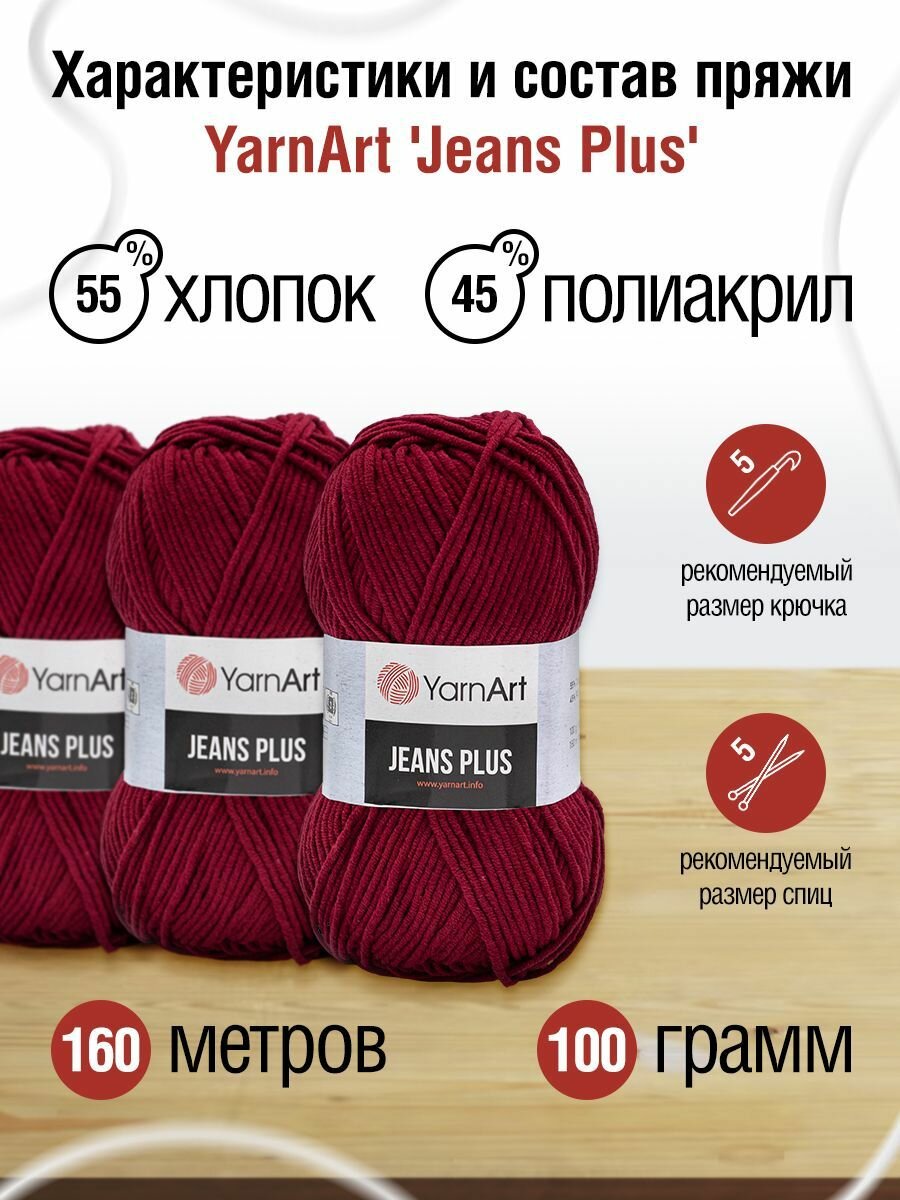 Пряжа для вязания YarnArt 'Jeans Plus' 100г, 160м (55% хлопок, 45% полиакрил) (66 бордо), 5 мотков информация: