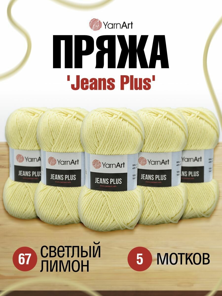 Пряжа для вязания YarnArt 'Jeans Plus' 100г, 160м (55% хлопок, 45% полиакрил) (67 светлый лимон), 5 мотков информация: