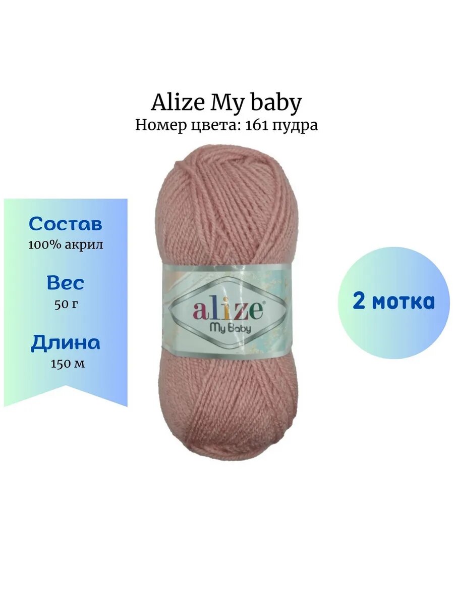 Пряжа для вязания Alize My baby 161 пудра 2 шт 50 гр/150 м 100% акрил 585 ₽