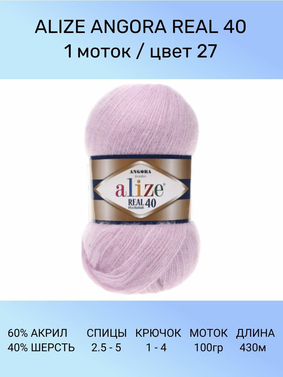Пряжа ALIZE ANGORA REAL 40, лиловый - 27, 40% шерсть, 60% акрил, 5 мотков, 100 г, 430 м. 1 494 ₽