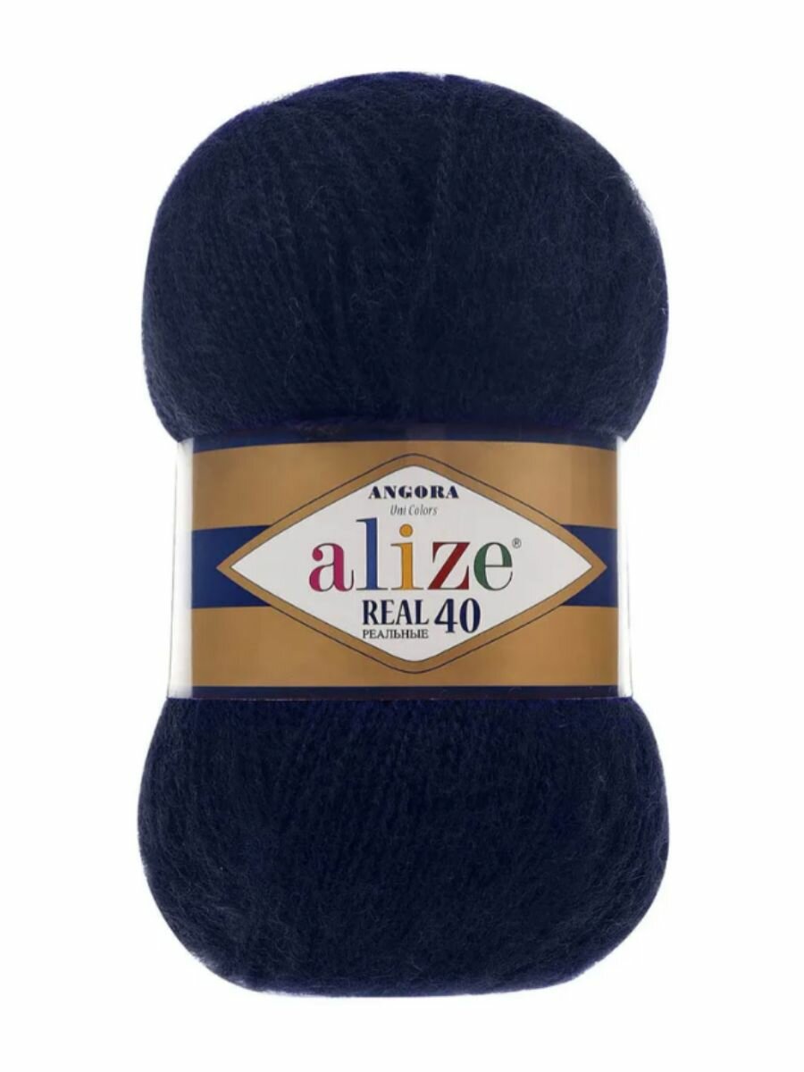 Пряжа Alize Angora Real 40 (Ангора Реал 40) - 2 мотка цвет 58 темно-синий 40% шерсть, 60% акрил 100г 480м