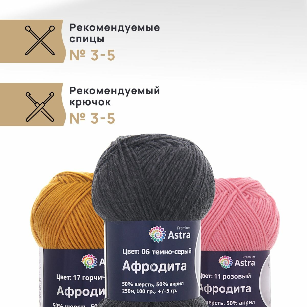 Пряжа для вязания Astra Premium 'Афродита' 100г, 250м (50% шерсть, 50% акрил) (06 темно-серый), 3 мотка информация:
