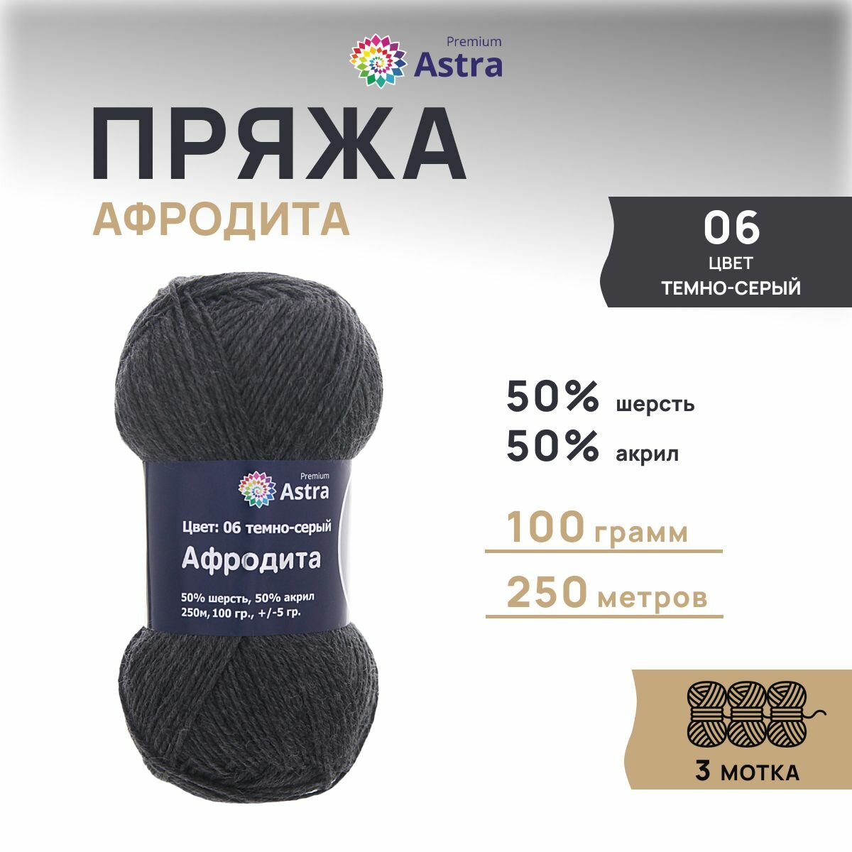 10 цен на Пряжа для вязания Astra Premium 'Афродита' 100г, 250м (50% шерсть, 50% акрил) (06 темно-серый), 3 мотка