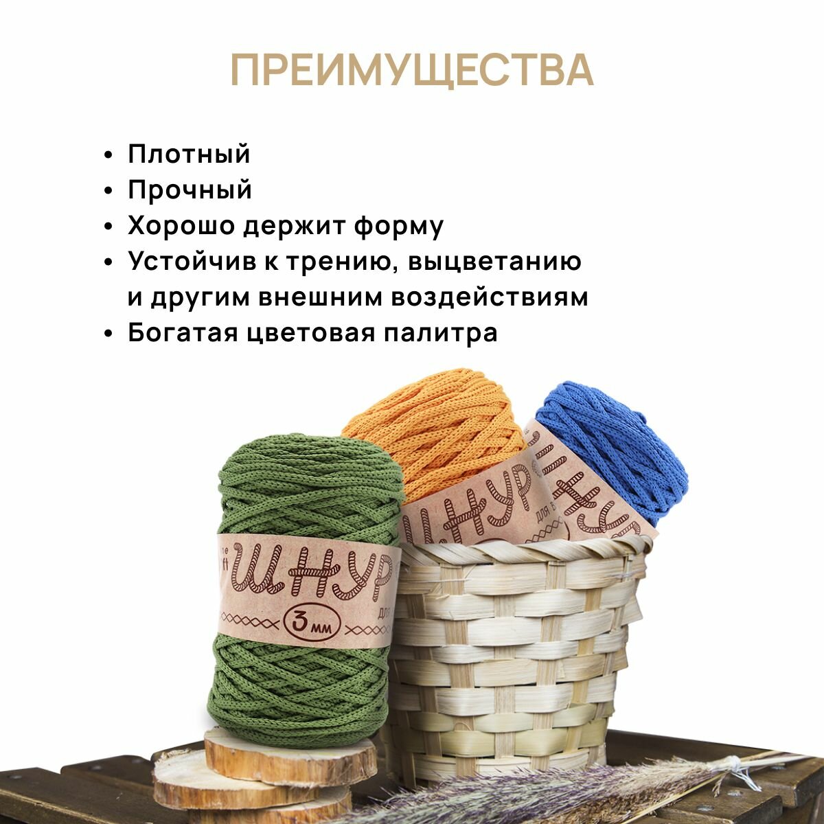 Пряжа для вязания Astra Premium 'Шнур для вязания 3 мм', 200г, 100м (100% полиэфир) (490 хаки), 3 мотка 1 105 ₽