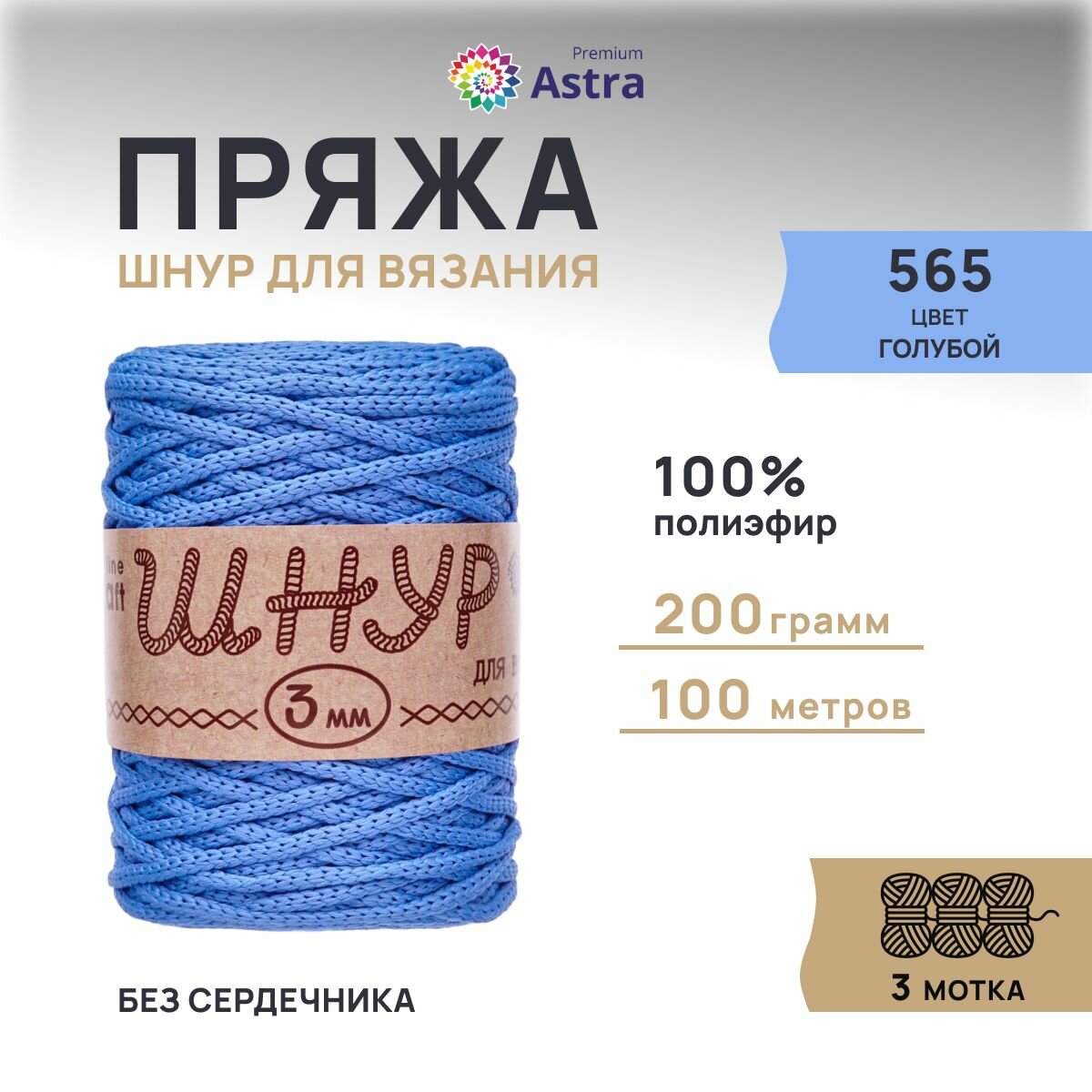 Пряжа для вязания Astra Premium 'Шнур для вязания 3 мм', 200г, 100м (100% полиэфир) (565 голубой), 3 мотка 1 139 ₽