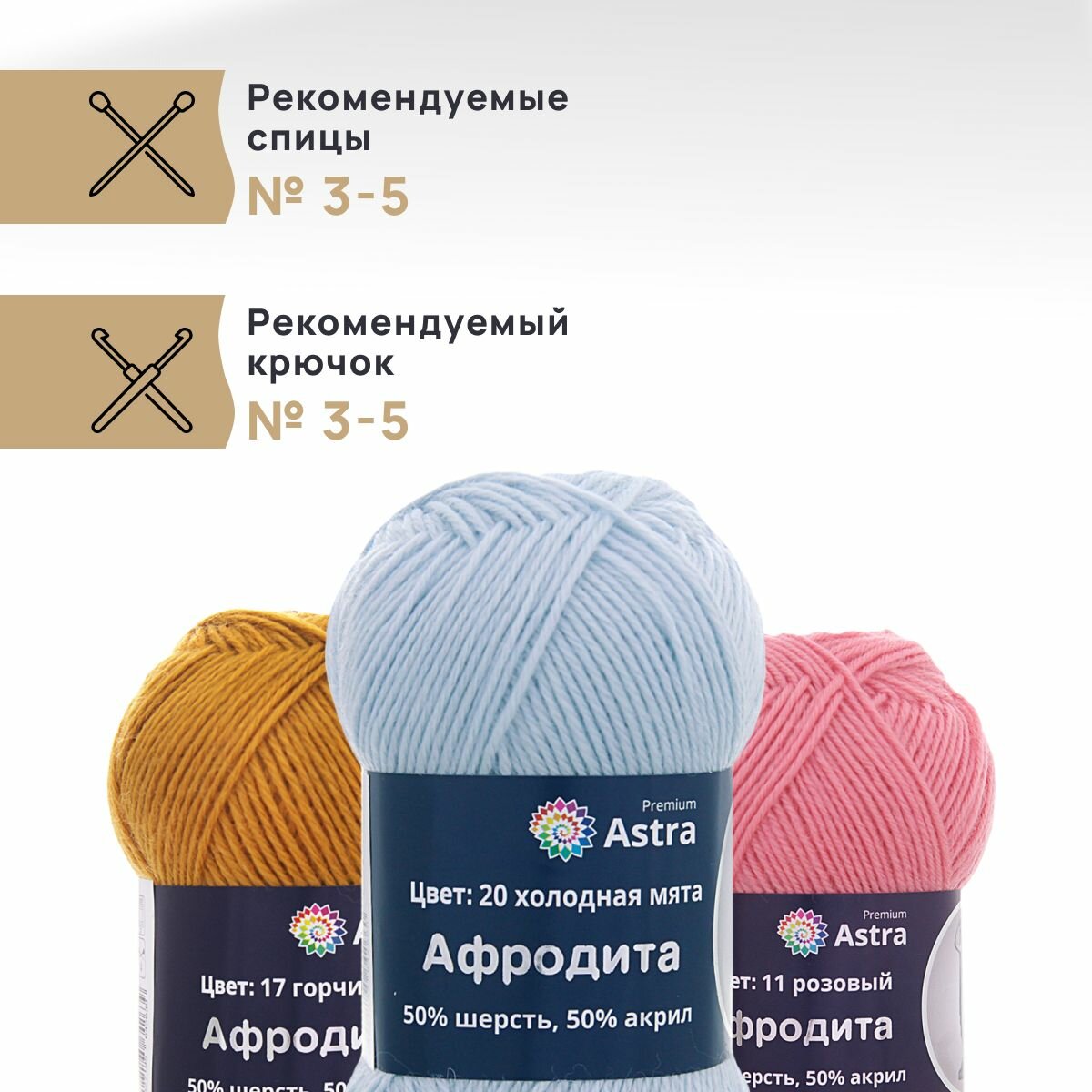 Пряжа для вязания Astra Premium 'Афродита' 100г, 250м (50% шерсть, 50% акрил) (20 холодная мята), 3 мотка информация: