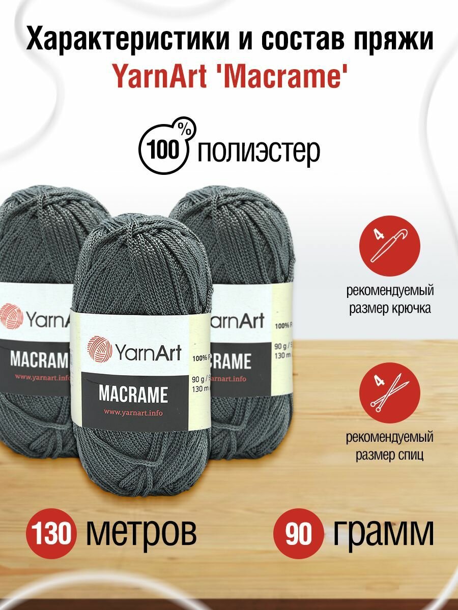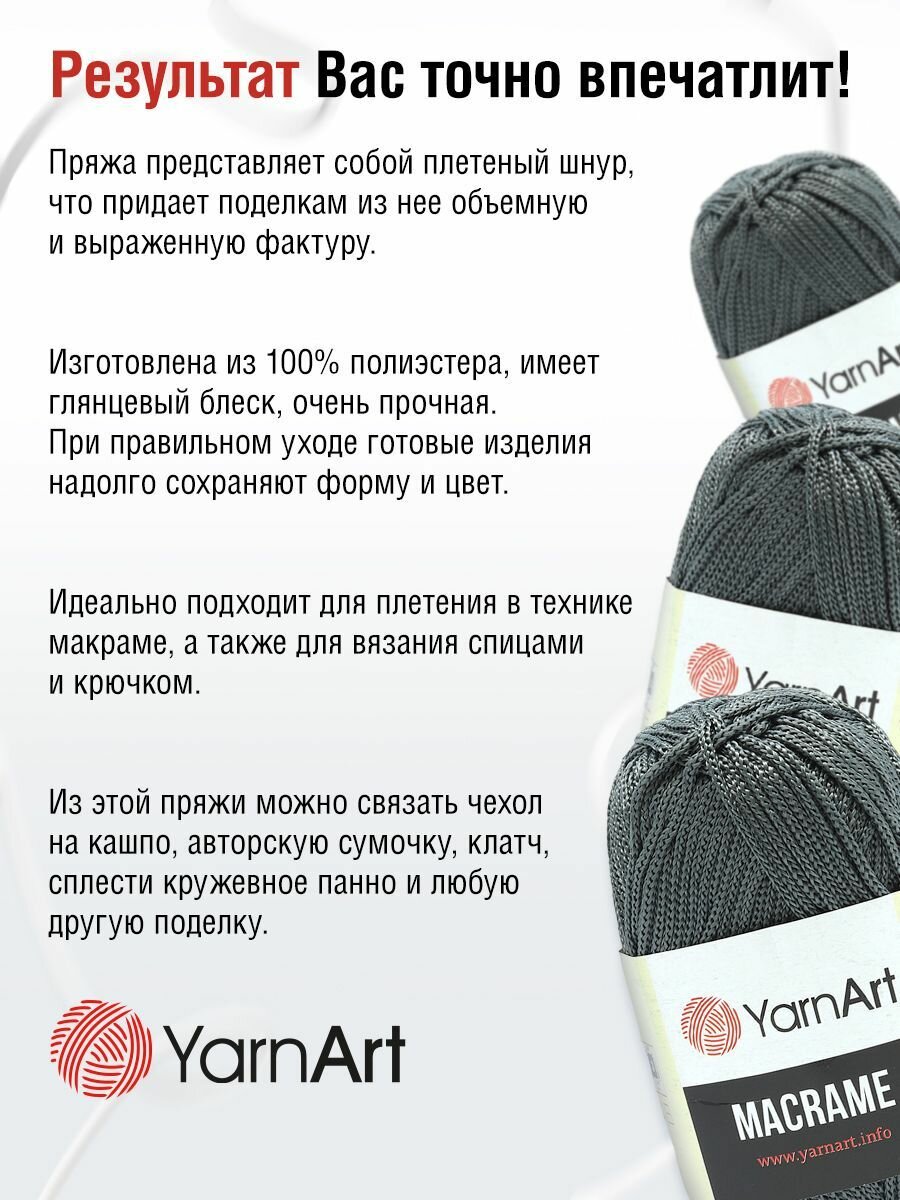 Пряжа для вязания YarnArt 'Macrame' 90г, 130м (100% полиэстер) (159 серый), 6 мотков информация:
