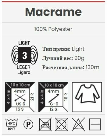 Отзывы на Пряжа YarnArt Macrame (Макраме) цвет 161 полиэстер 100%, 6 мотков по 90 г по 130 м