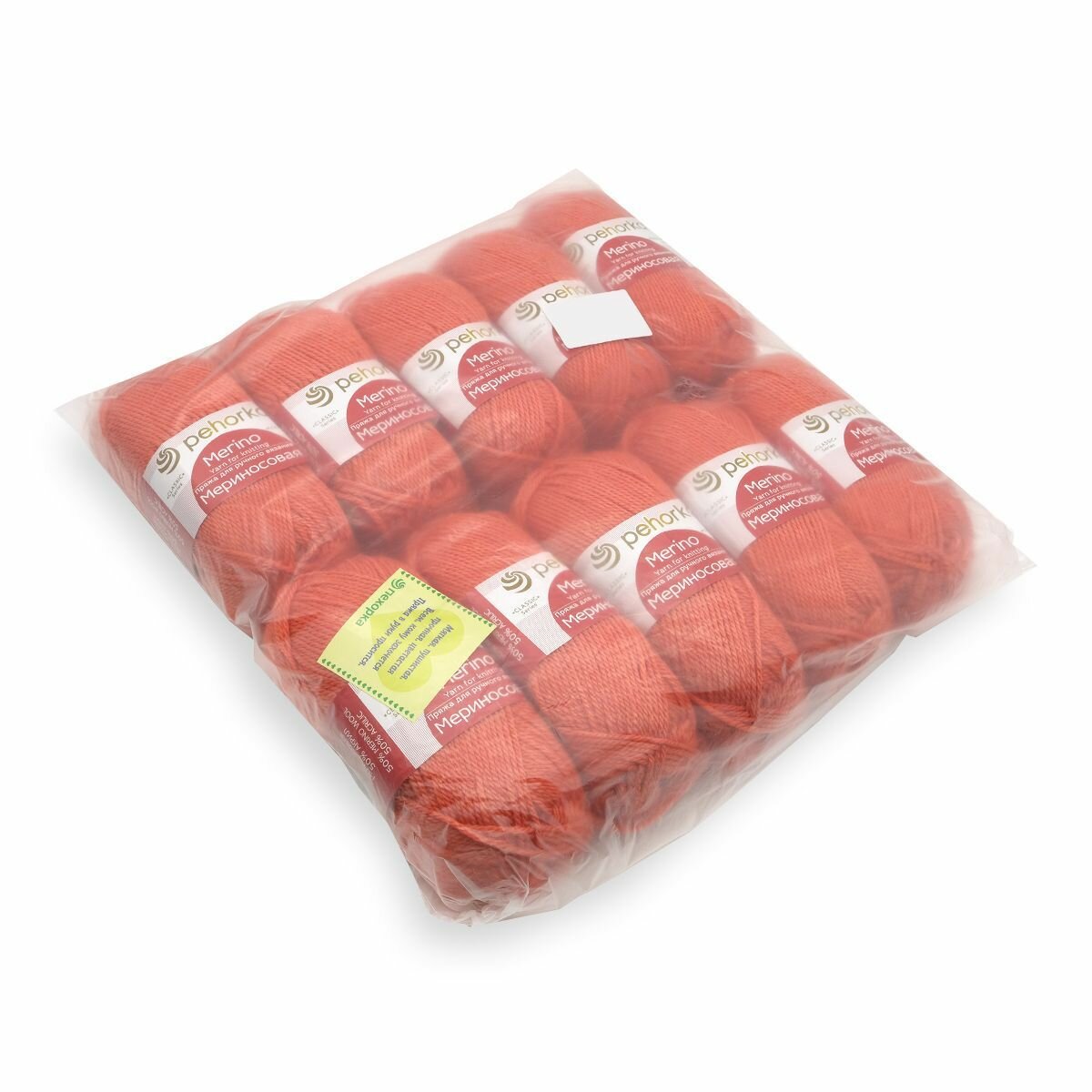 Пряжа для вязания Пехорка 'Мериносовая' 100г, 200м (50% шерсть, 50% акрил) (396 настурция), 10 мотков информация: