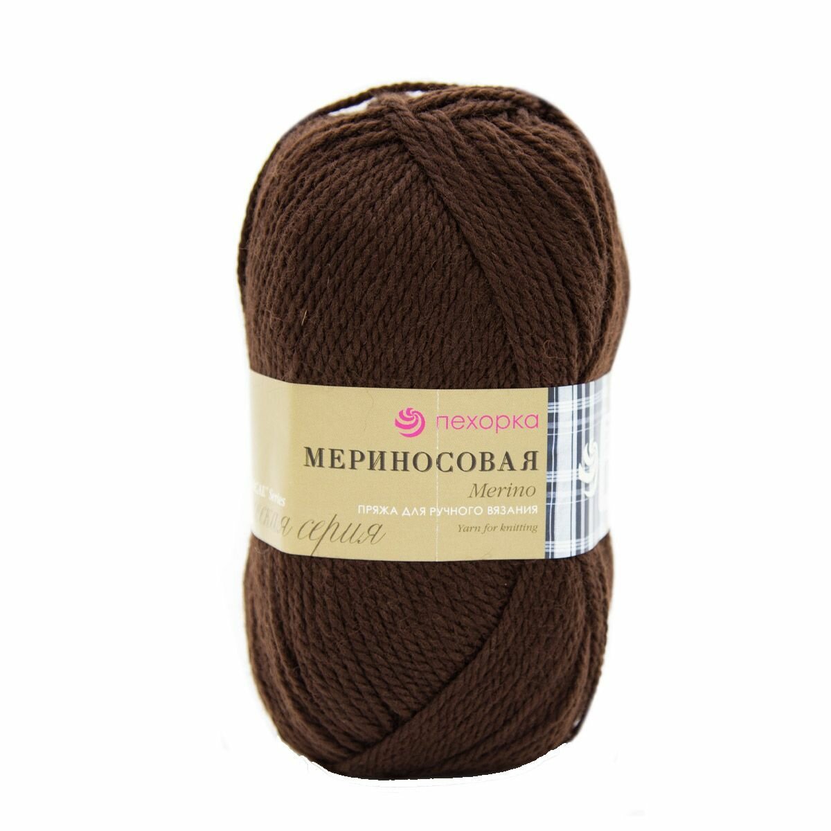 Пряжа Пехорка "Мериносовая" - 1 шт, цвет: 251-Коричневый, 200м/100г, 50% мериносовая шерсть, 50% акрил
