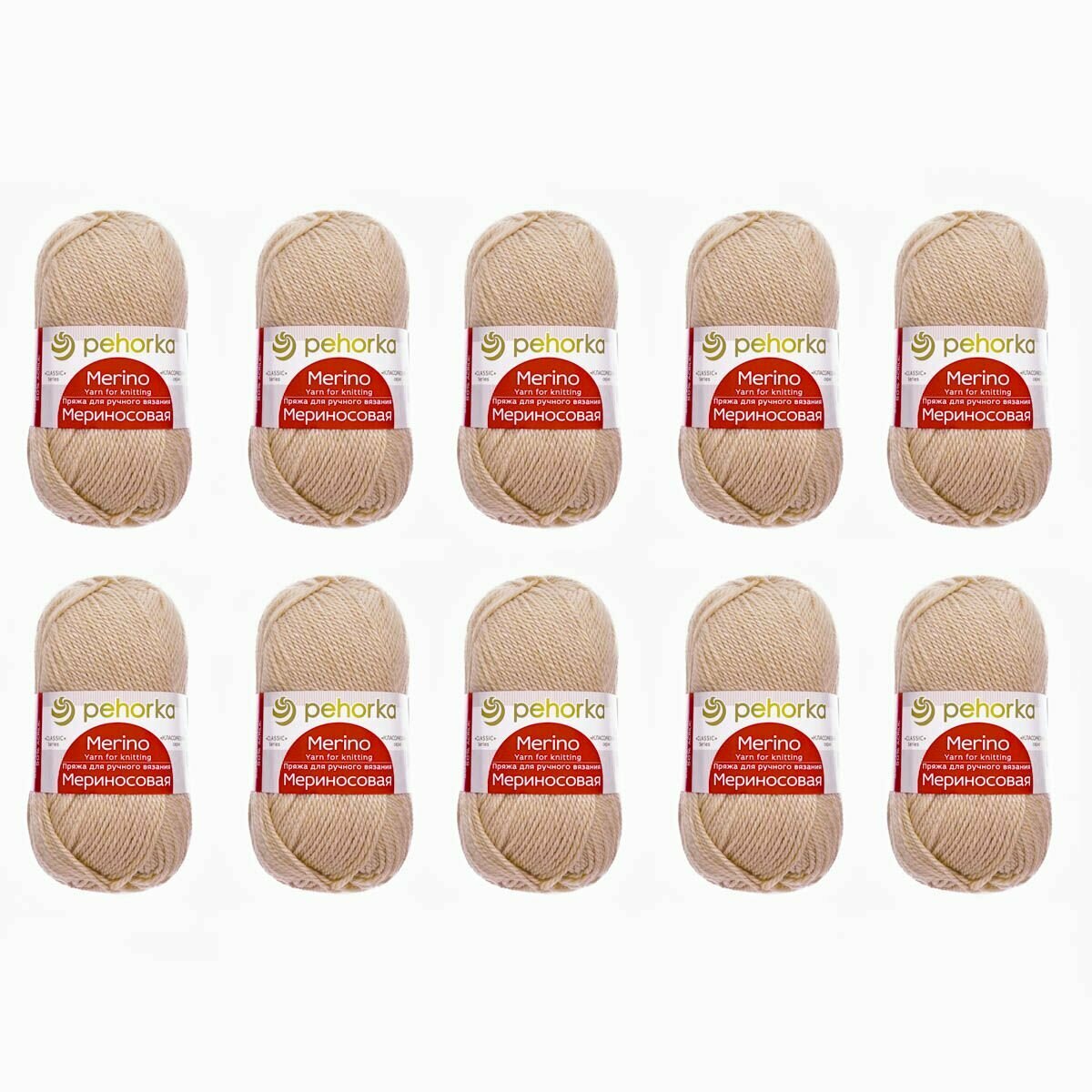 10 цен на Пряжа для вязания Пехорка 'Мериносовая' 100г, 200м (50% шерсть, 50% акрил) (124 песочный), 10 мотков