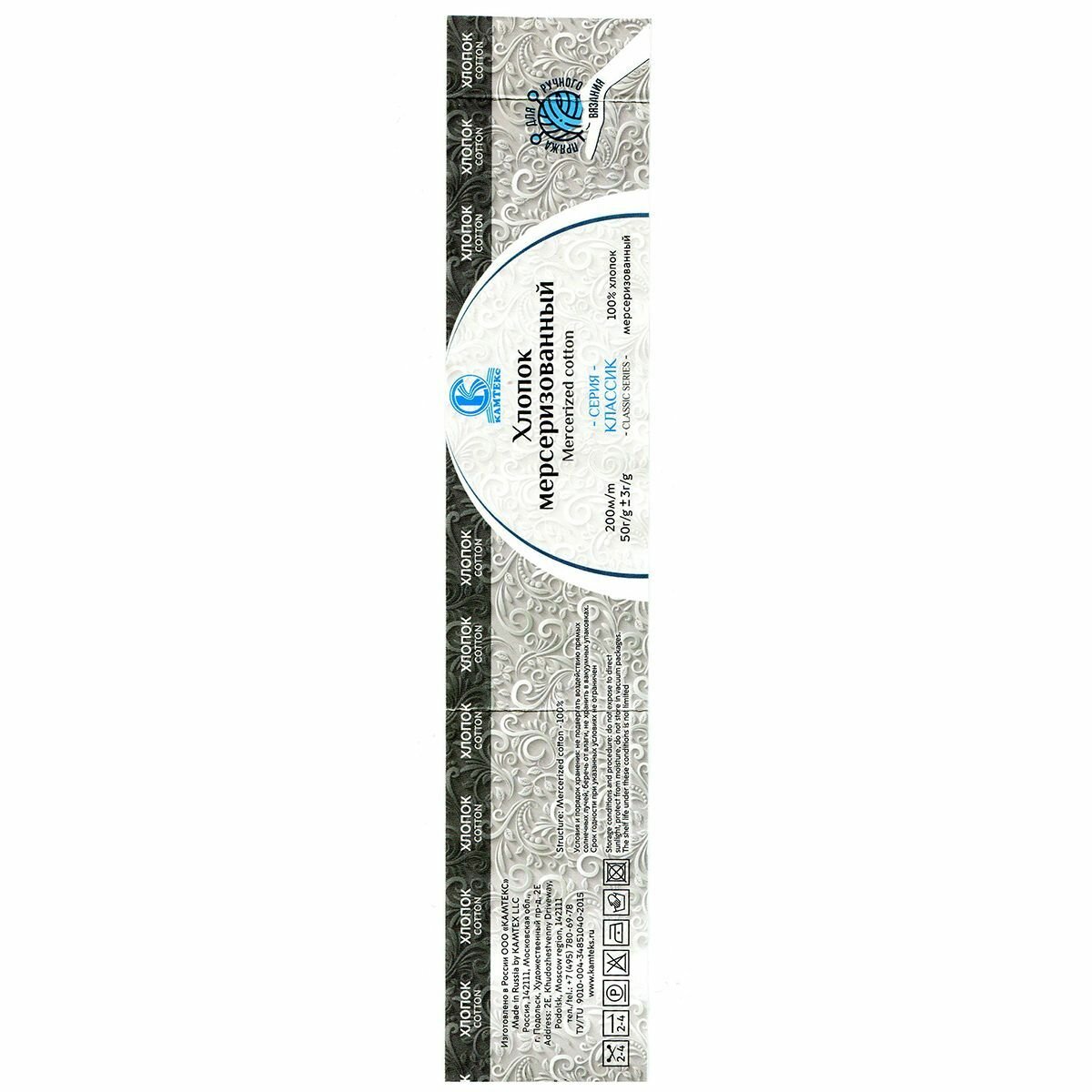 Пряжа Камтекс Хлопок мерсеризованный отбелка (002), 100%мерсеризованный хлопок, 200м, 50г, 1шт