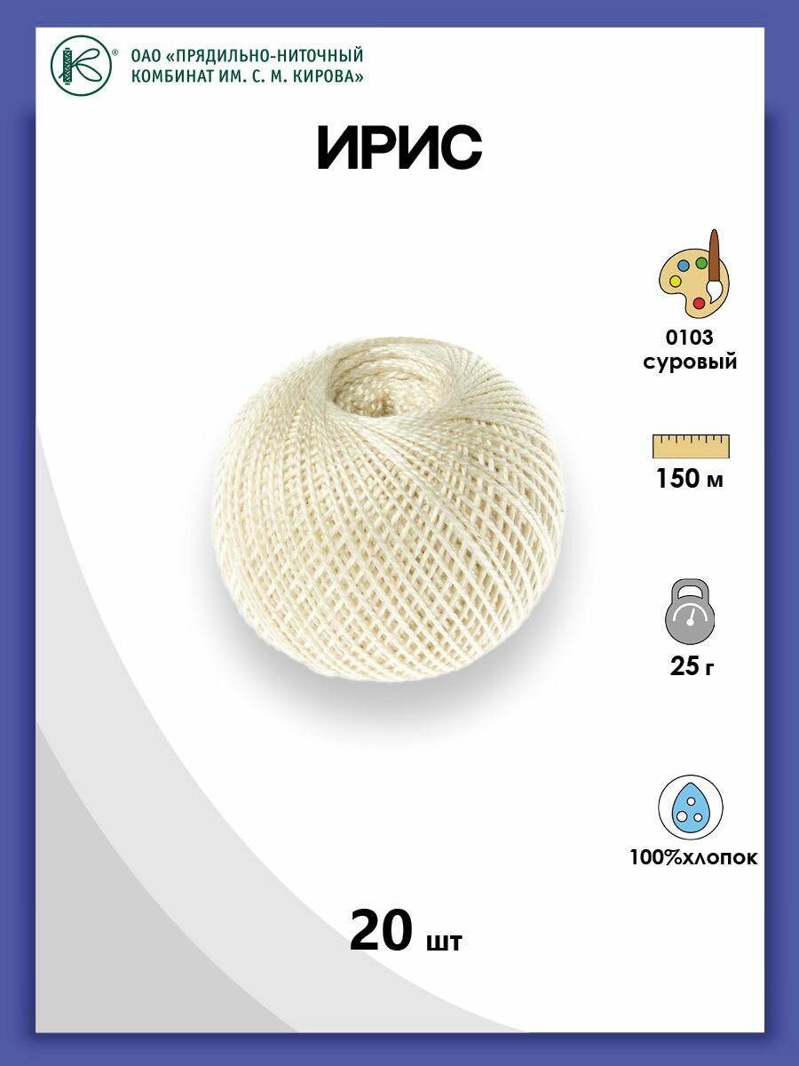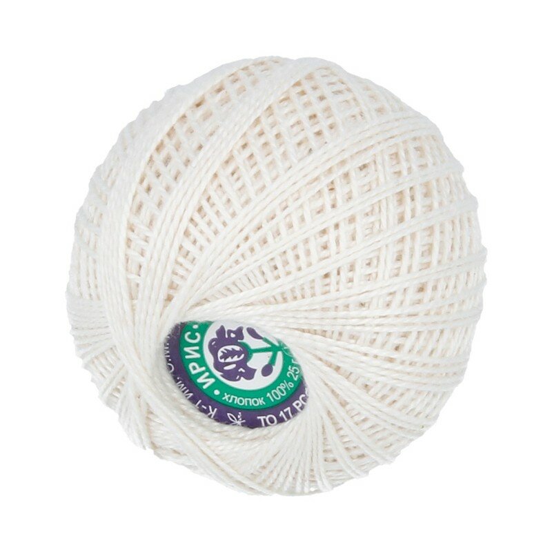 Нитки для вязания крючком ПНК им. Кирова 'ирис' (100% хлопок) 25г, 150м (0102 молочный), 20 мотков