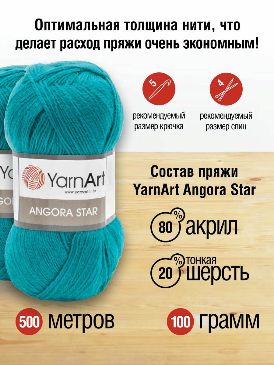 Пряжа YarnArt Angora Star (Ярнарт Ангора Стар) Нитки для вязания, 100г, 500м, 20% шерсть 80% акрил, цвет 545 петрольный, 1 шт.