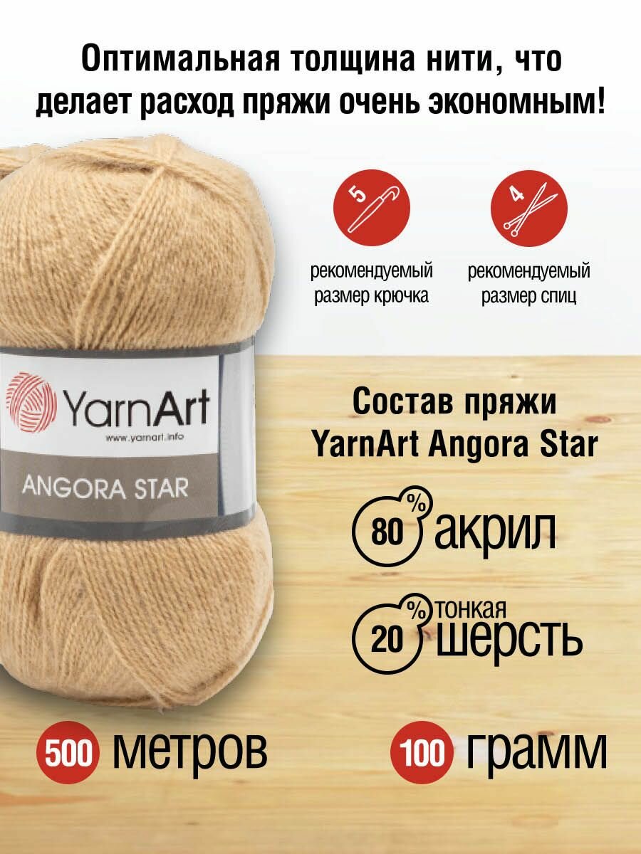 Пряжа для вязания YarnArt 'Angora Star' 100г, 500м (20% тонкая шерсть, 80% акрил) (511 светлая карамель), 5 мотков информация: